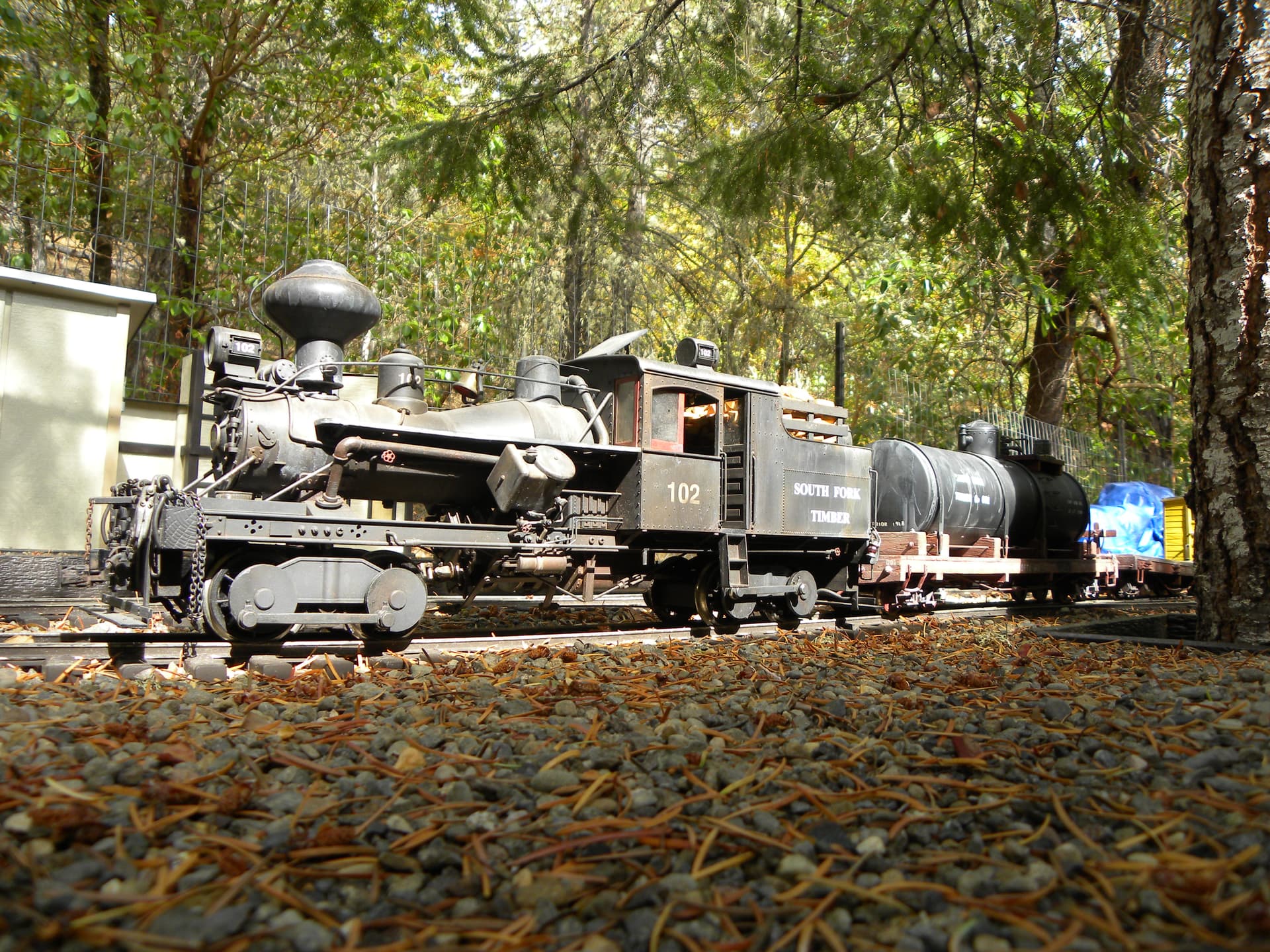 Always nice to fall into a deal like this she was already painted, weathered, with on board battery, Revolution and Phoenix sound. I changed the couplers, slapped South Forks name on it and started running.