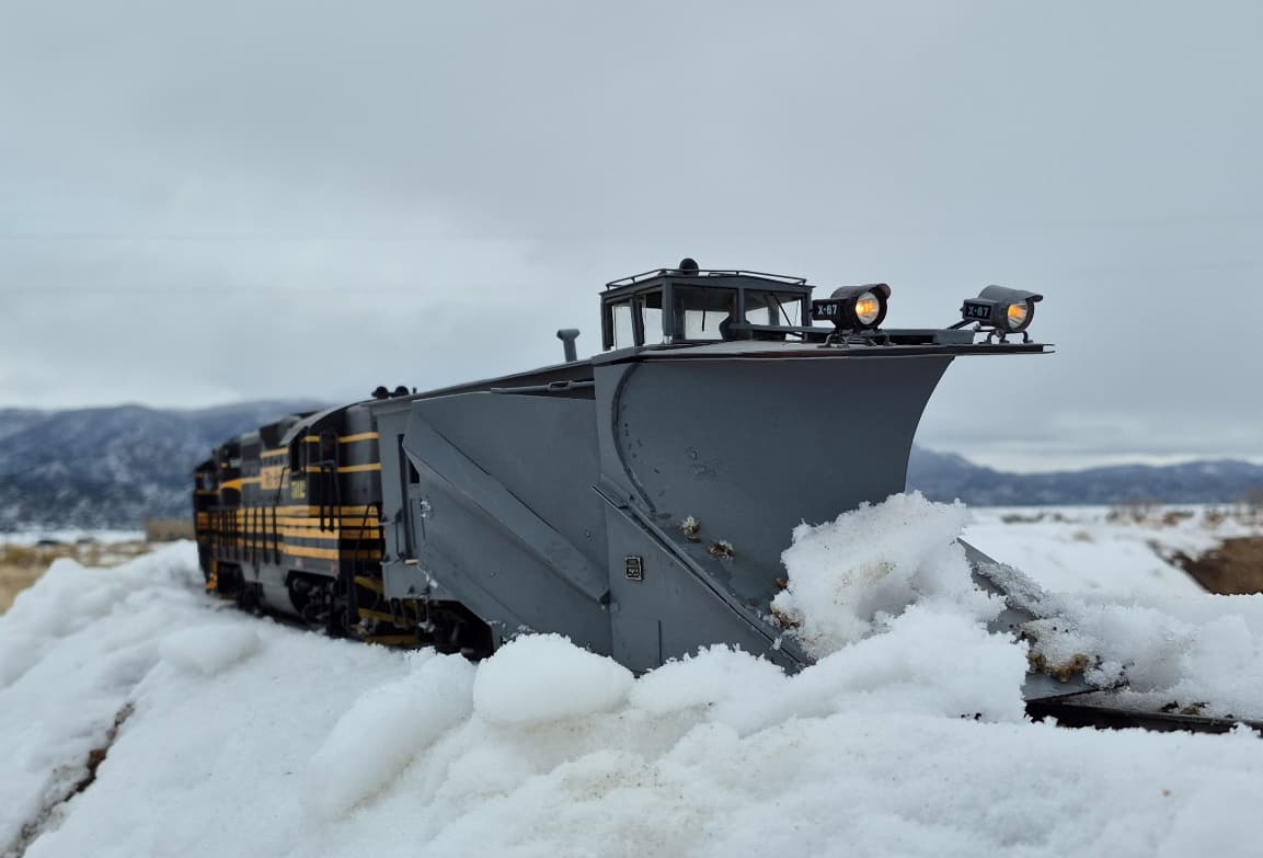 We got about 5" on Wedensday night, but it was way too cold for my liking to plow on Thursday morning. Some of it has melted and/or blown away since. It was 30 degrees this morning, so I sent a train out to clear things out.