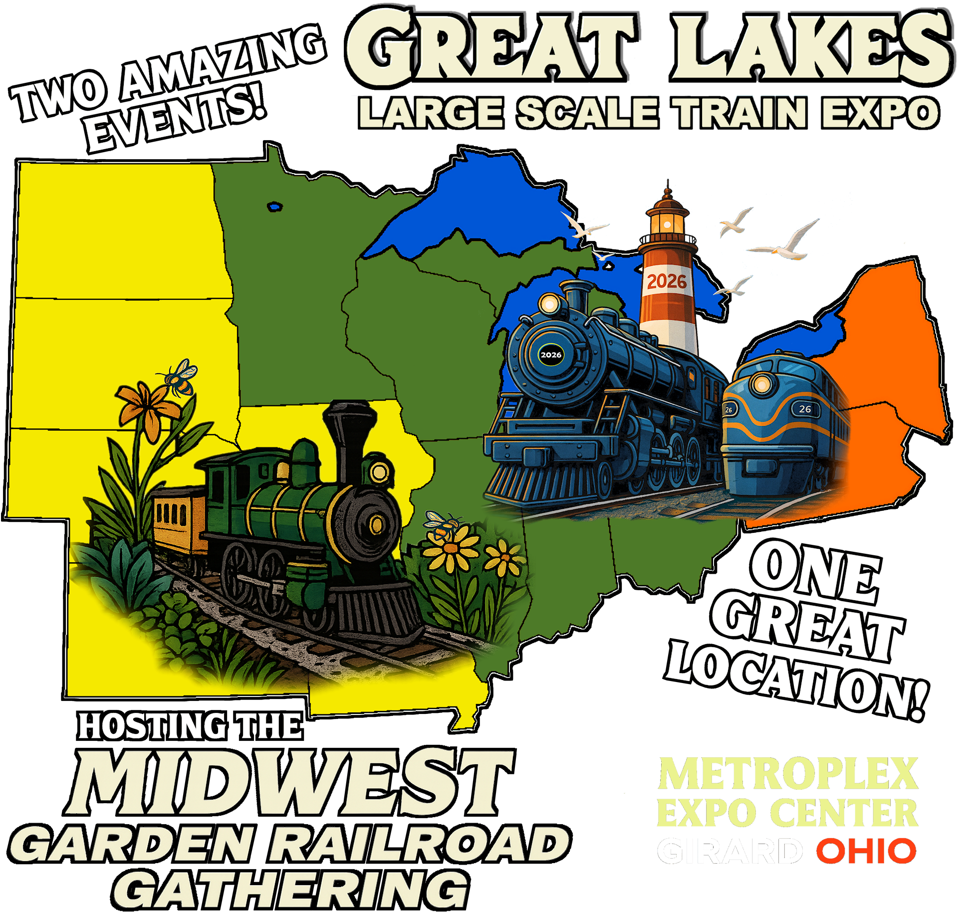The Great Lakes Large Scale Train Expo and Midwest Garden Railroad Gathering have come together for 2026 to create a bigger, more dynamic experience for everyone in the large‑scale railroading community. This partnership brings the best of both worlds into one coordinated event—combining the depth and camaraderie of the Gathering with the energy and excitement of the Expo.