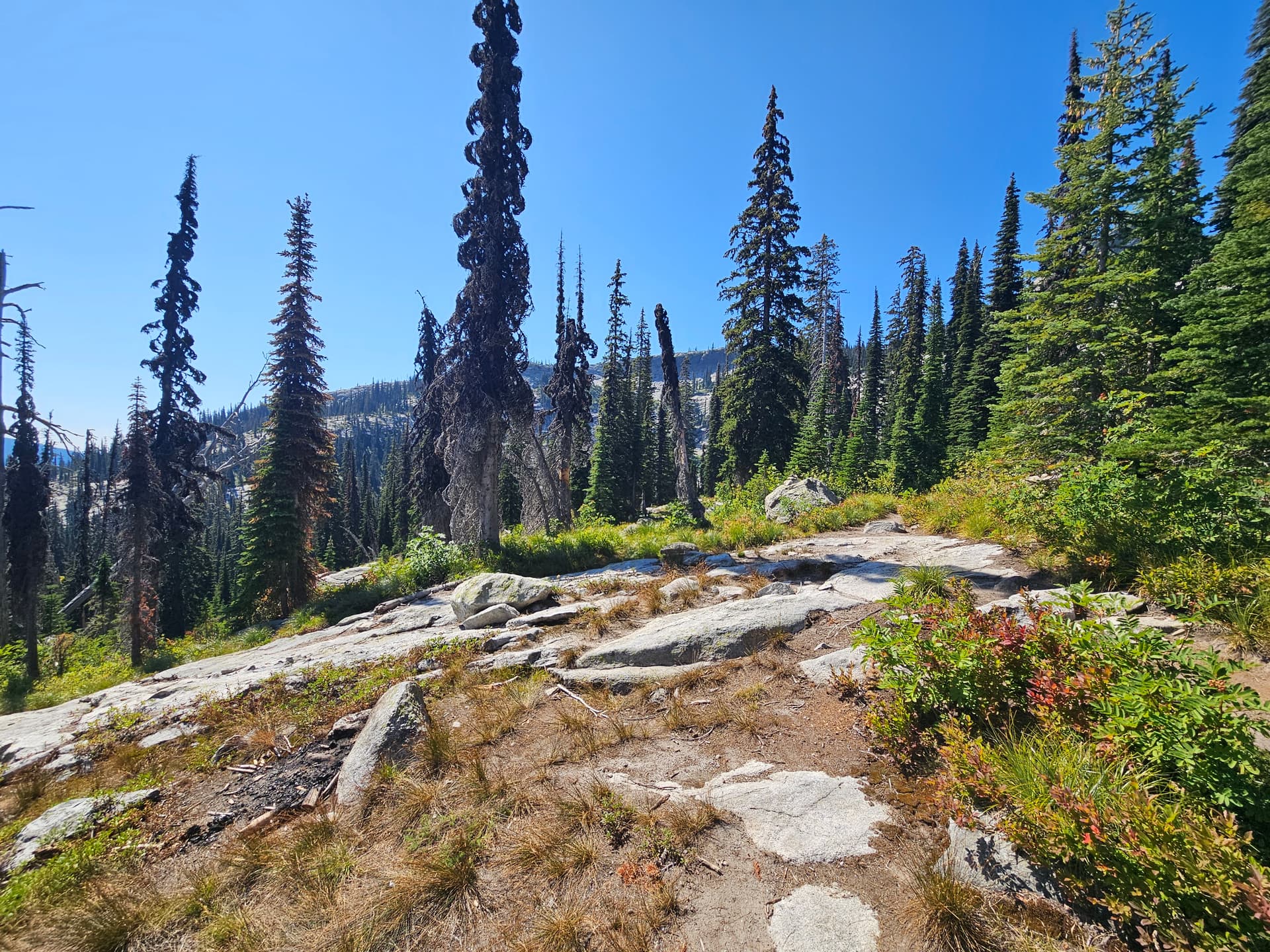 Part of the trail just before the lake is just a granite rock slope only marked by rock piles to reassure you that you are not lost.
