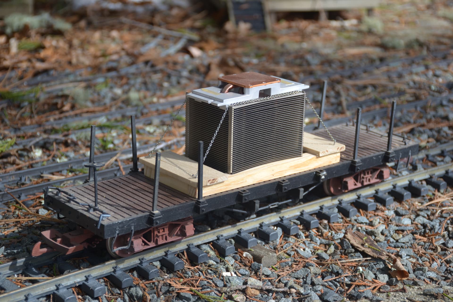We recently had our burner serviced and the guy replaced this check valve and of course I had to save it for the RR. After adding elbows, painting it in primer and building a shipping cradle I think it makes for an interesting load.