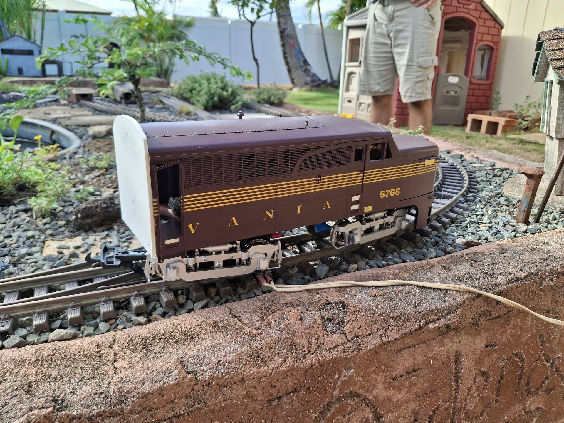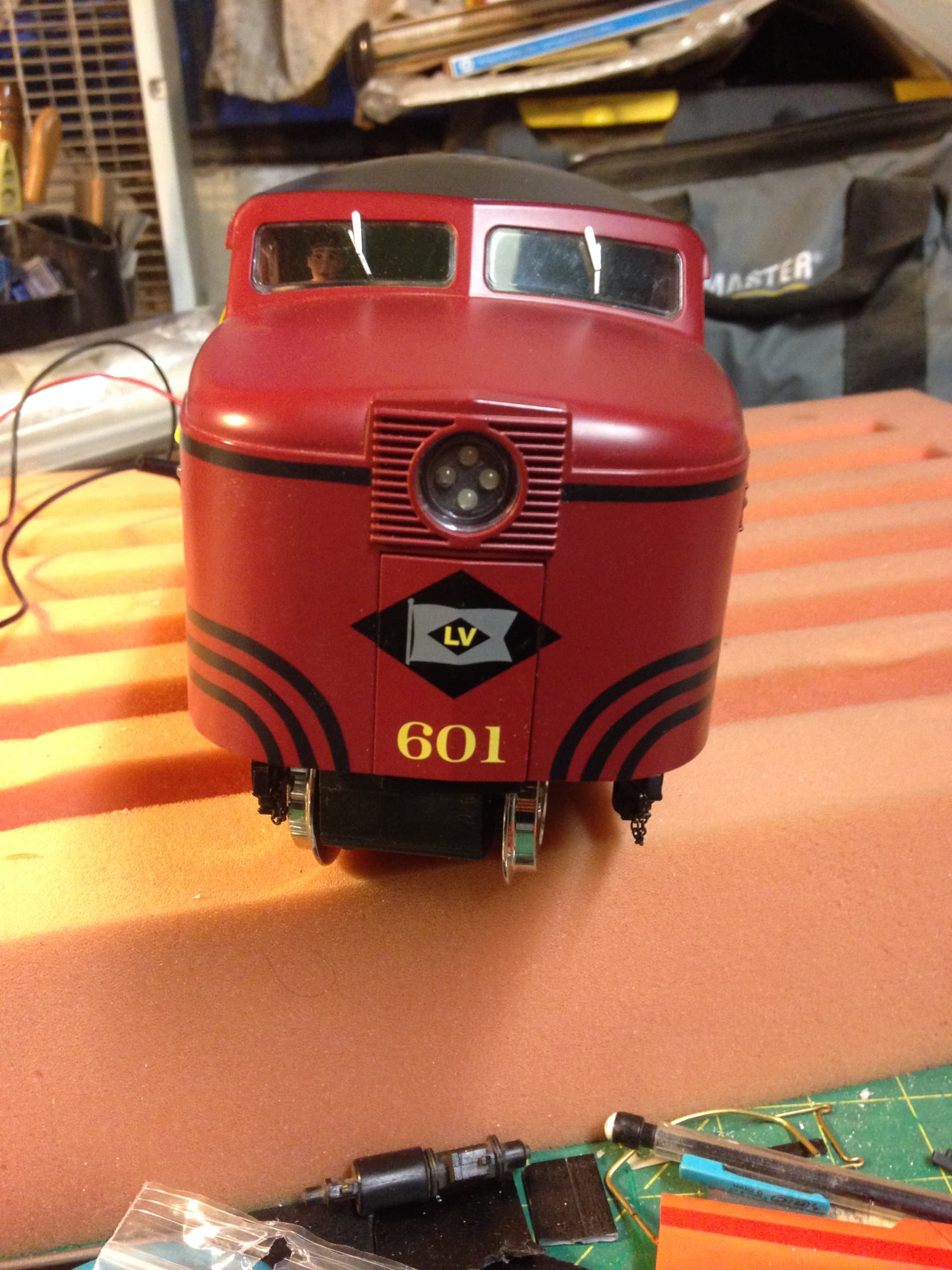 He’s been puttying and filing all day. This may be the last shot of this beast in Pennsy colors…