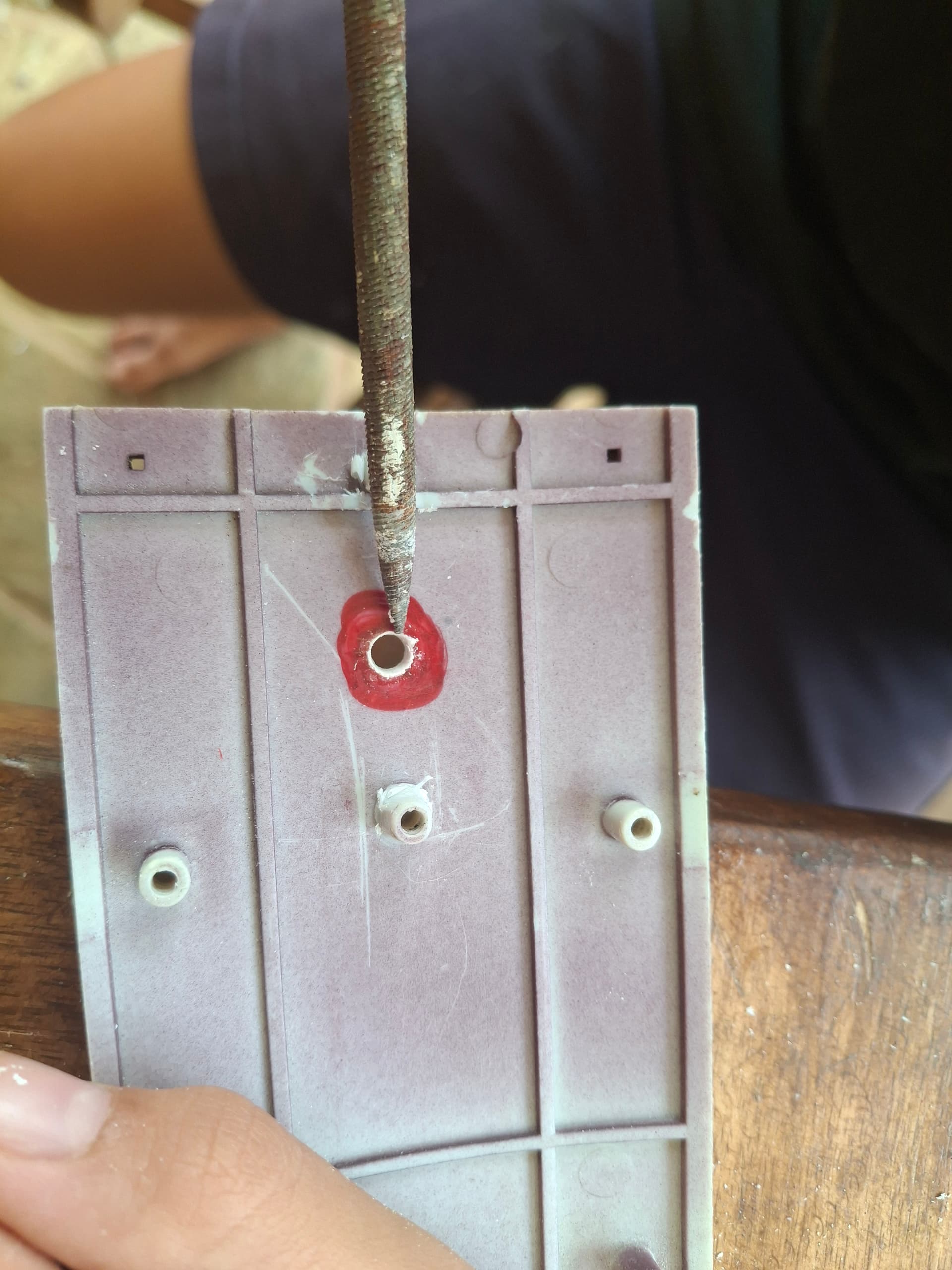 …and he set-to with a DREMEL to enlarge the holes to accommodate the various screws.