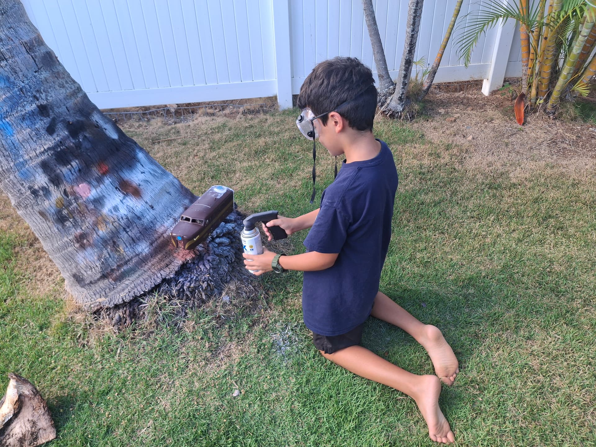 He puttered with the lights and wiring, did some final sanding, and it was off to the Palm of Spray Painting.