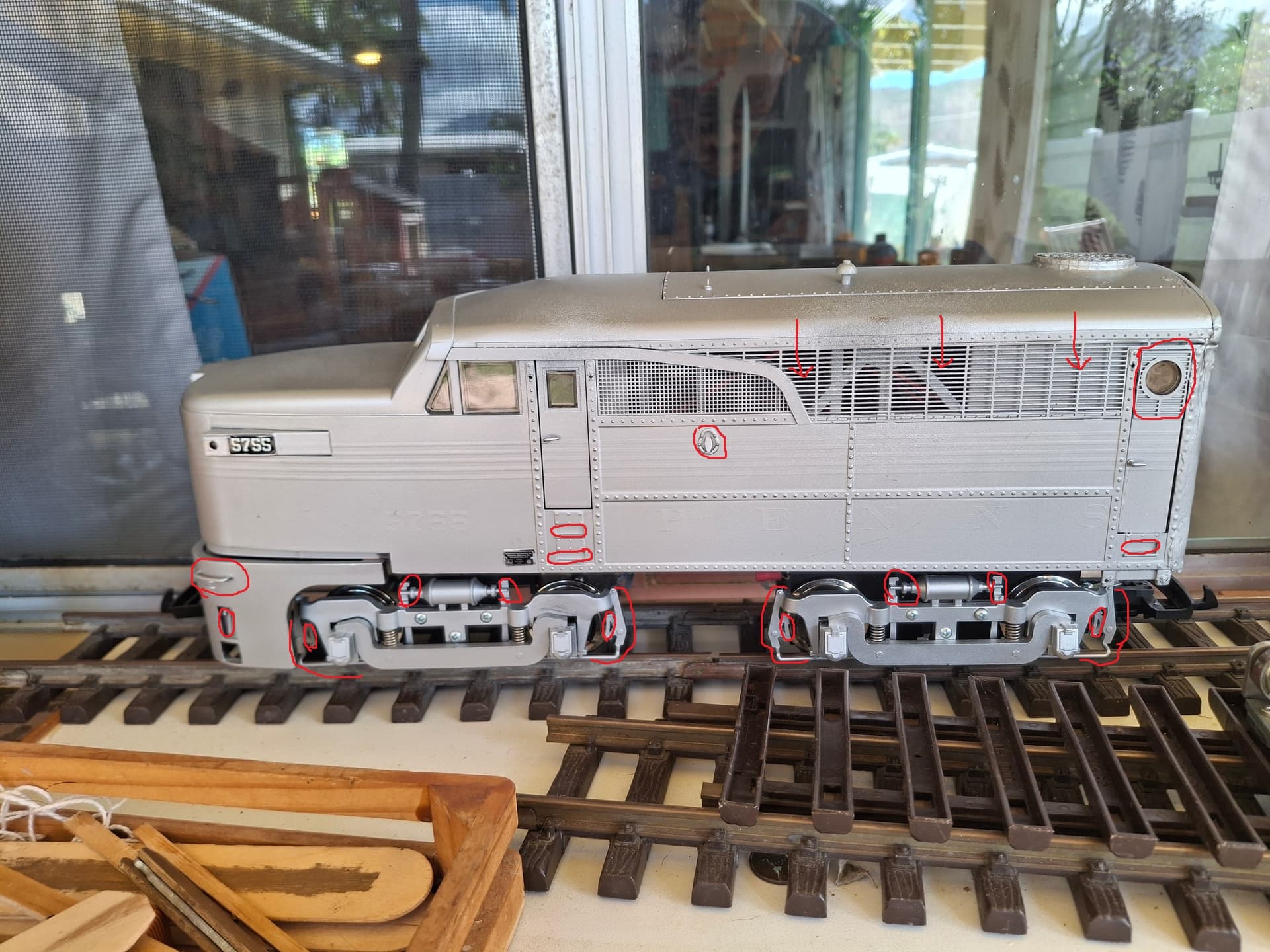 I circled some areas (in red) that could possibly be “picked” out or “highlighted” easily with a black sharpie if that interests your fancy. Also the red arrows point to the air screen that can easily be removed from the inside by bending the metal tabs up and slide the screen out.