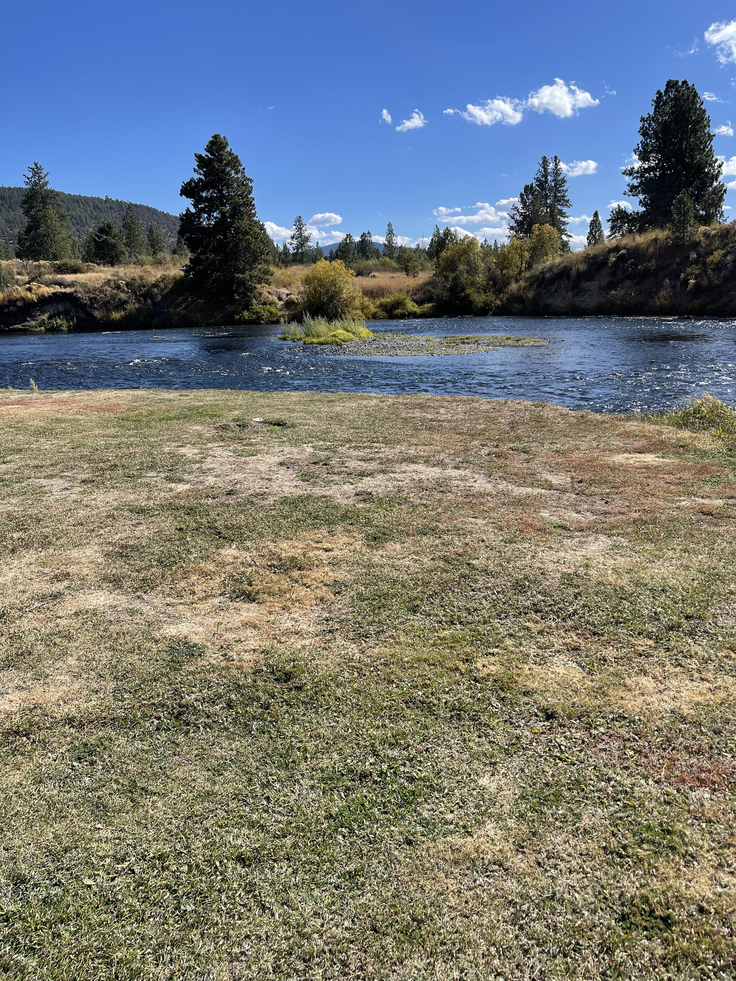 The Water Wheel RV park was a very pleasant surprise. Located right on the Williamson River with large open sites and plenty of area to walk the dogs. This also included an island of about a half acre that you can let the dogs run loose, great fun for them.