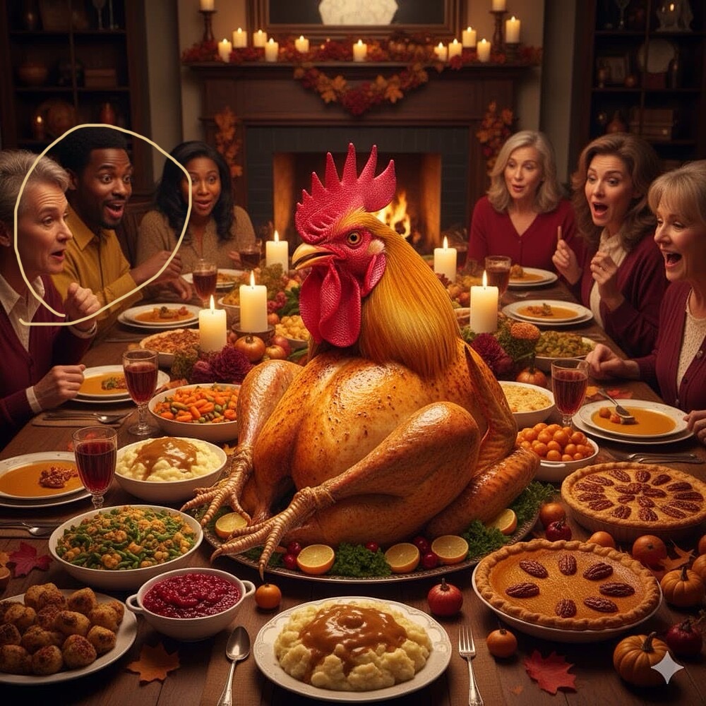 Bill, it’s coming up on Thanksgiving Day up here, so I was theorizing what the table might look like if its first celebrants caught a rooster rather than a turkey.