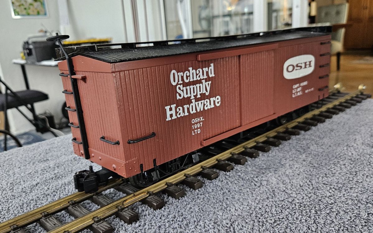 Orchard Supply Hardware boxcar and UP caboose don’t seem to have been used. Boxcar has metal wheels, and I think was a commissioned paint job, caboose has no couplers. $34 plus shipping for both. Paypal, cash/check; Zelle/Venmo at your risk.