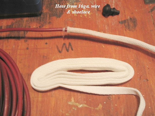 For the hose I used a heavy gauge wire used for outdoors and covered it with a large shoe lace. As bart said it’s a suction hose not a fire type hose.