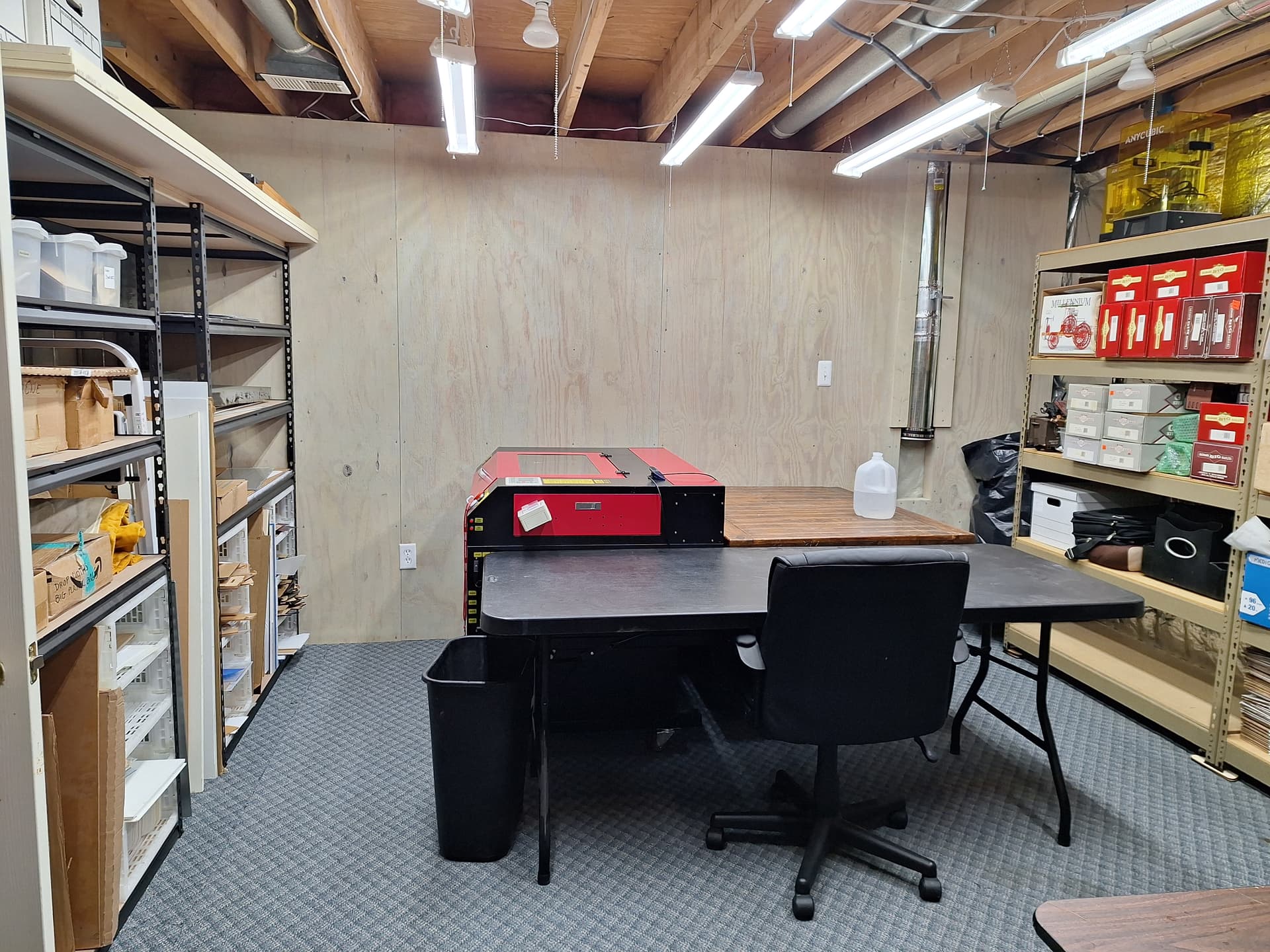 A month ago, we decided to reorganize the basement over the next year, with the objective being clearing out the main part and making a decent den area. Which would require moving the laser & materials stockpiles.