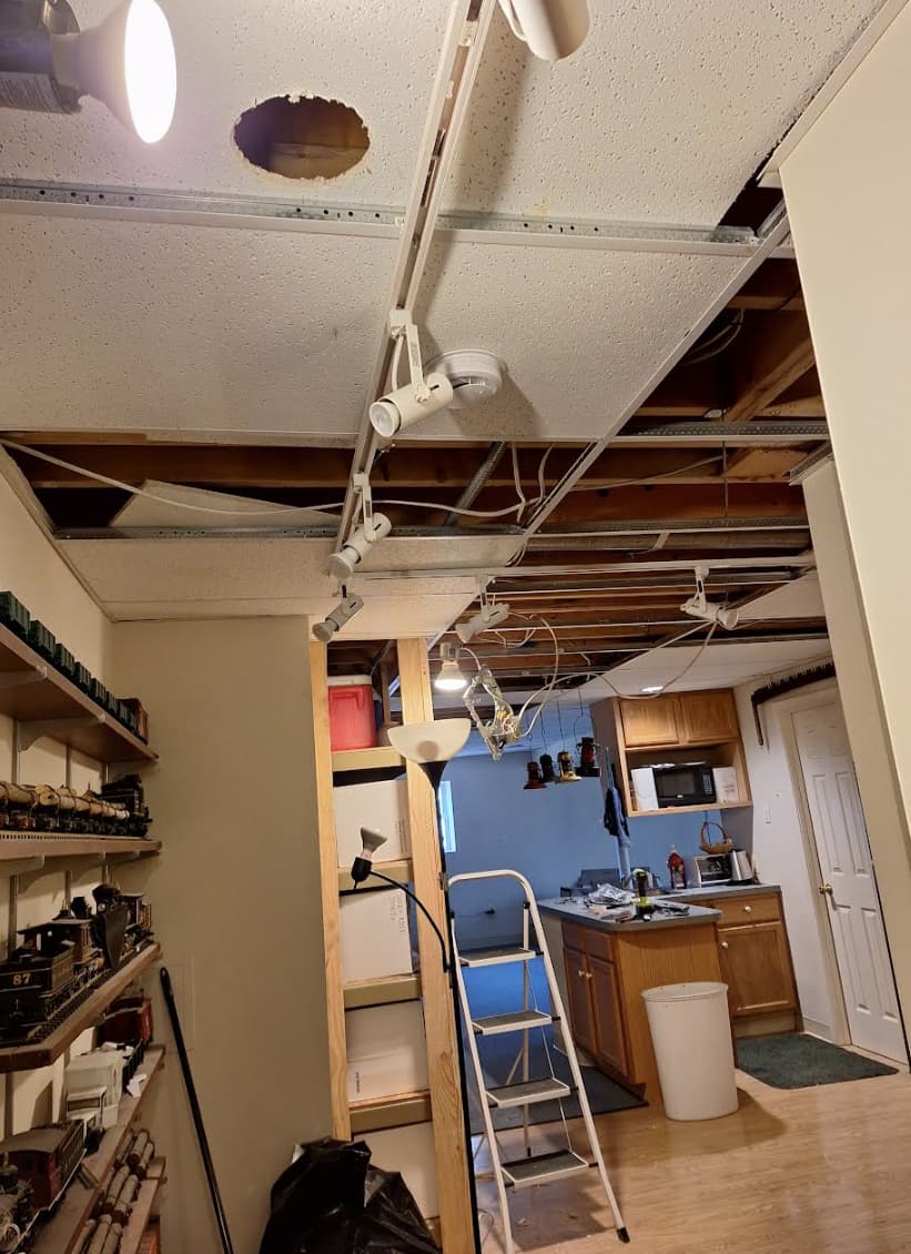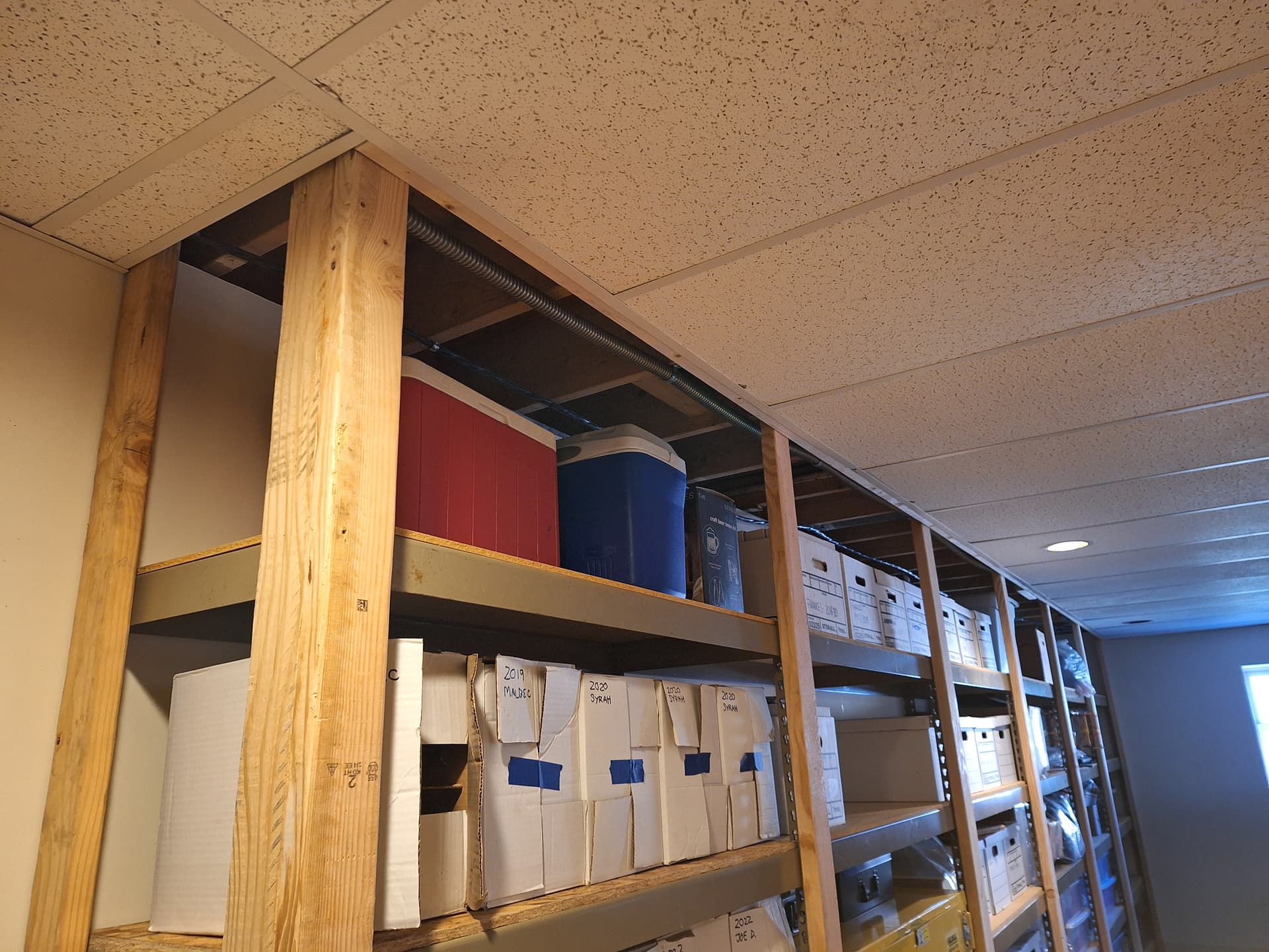 - Building a long storage closet against the wall of the main basement (where the crate-shelf was)