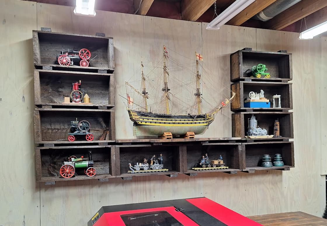 Linda saw the crate shelves late yesterday, and immediately populated them with some toy steam engines we have. Hers is the old Mamod on the lower left, she played with it when she was a kid. Others were things I bought over recent years, or build (on the right).