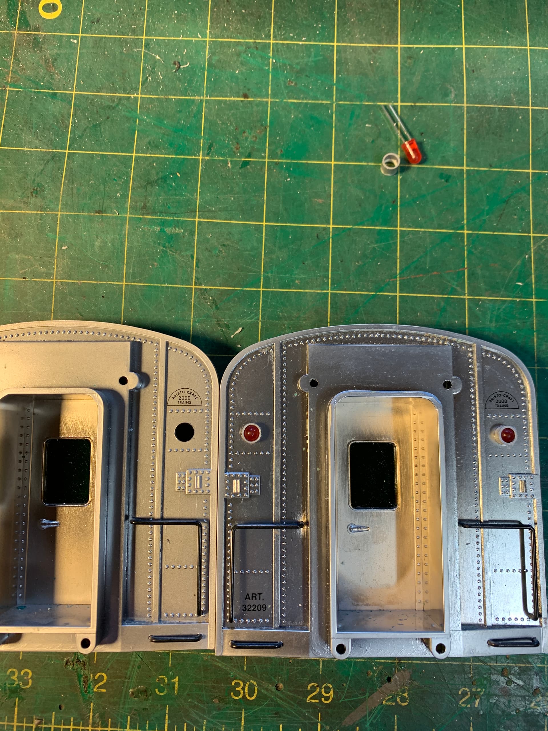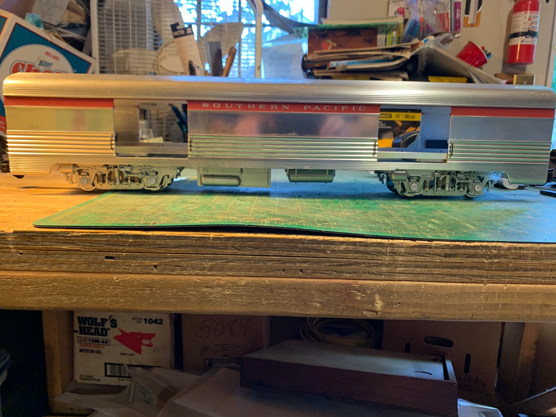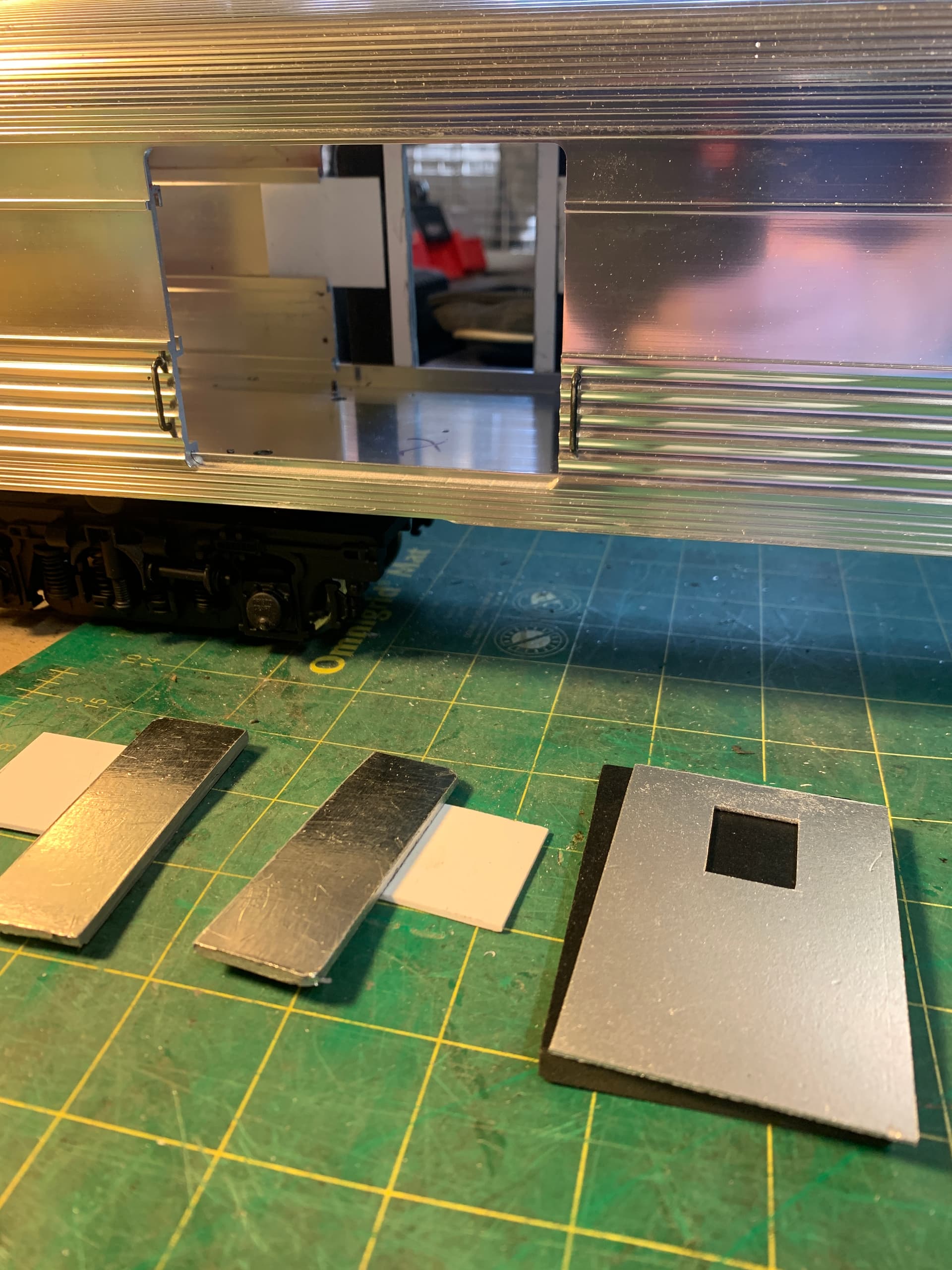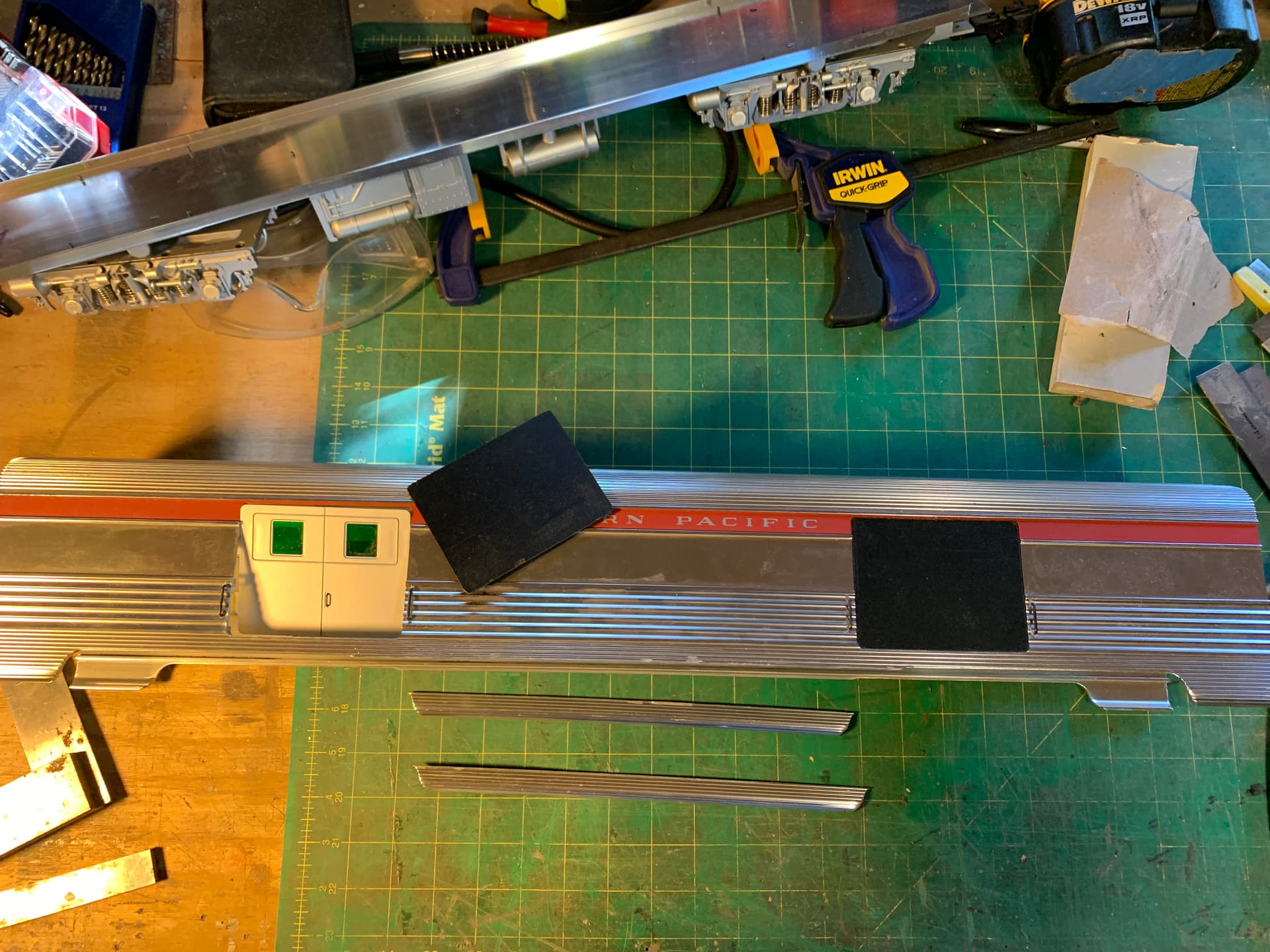 So in Amtrak fashion I cut off the lower skirting (for utilitarian access) this is how the car sits with lower skirting cut and at factory height (which I may have to raise up) and not lower in order to mate with my scratchbuilt and LGB stuff.