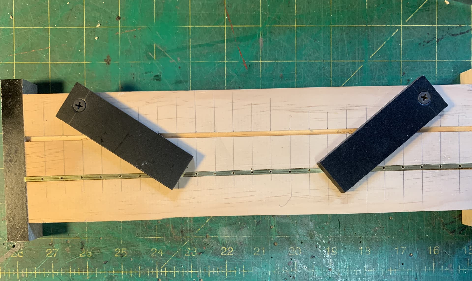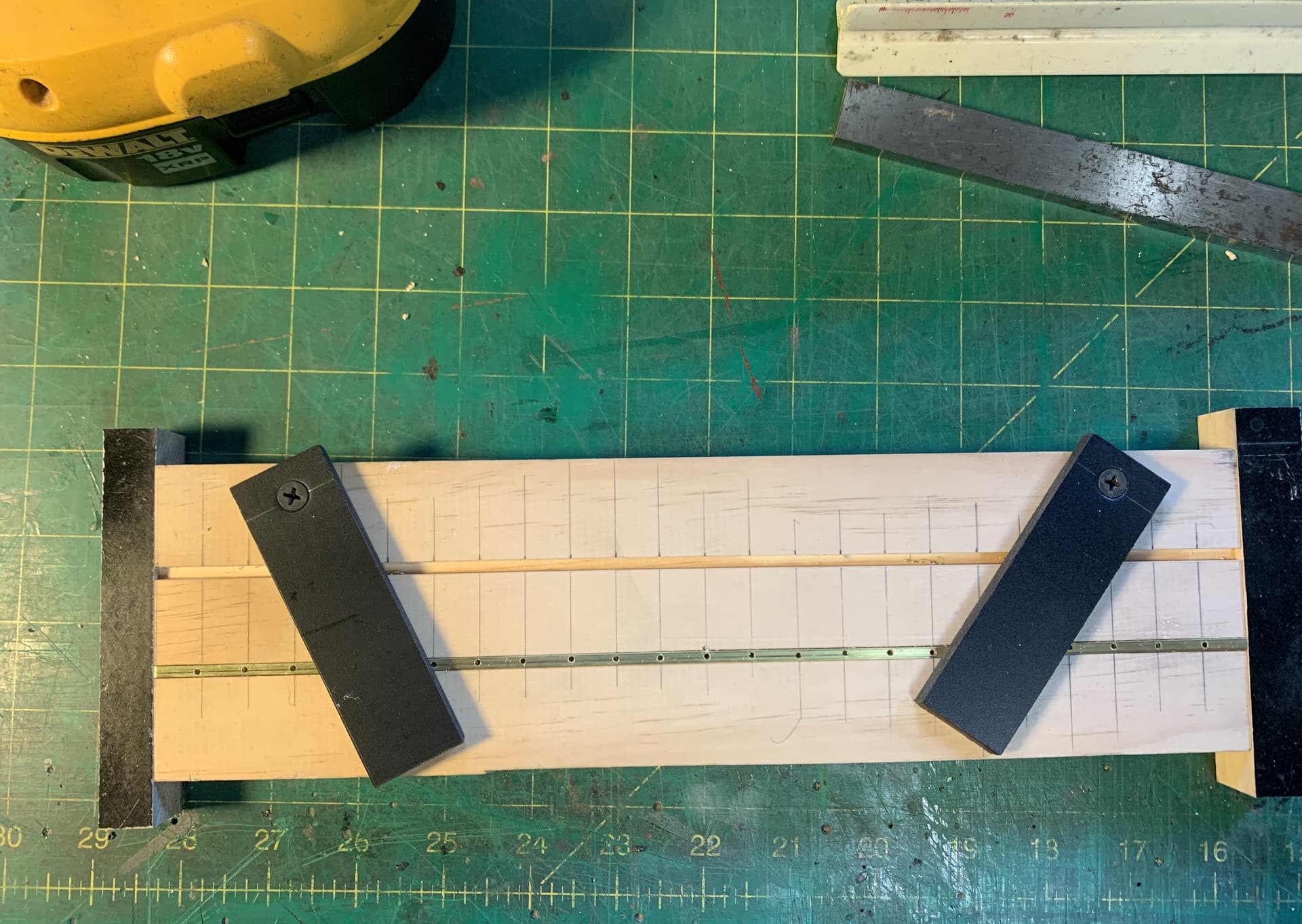 Well, I cleaned up a bit and still couldn’t find it so I spent an hour with some scraps and made a “new and improved” ghetto jig. This one does 4 matched rails per side so 8 total at a time with moveable hold downs and ends.