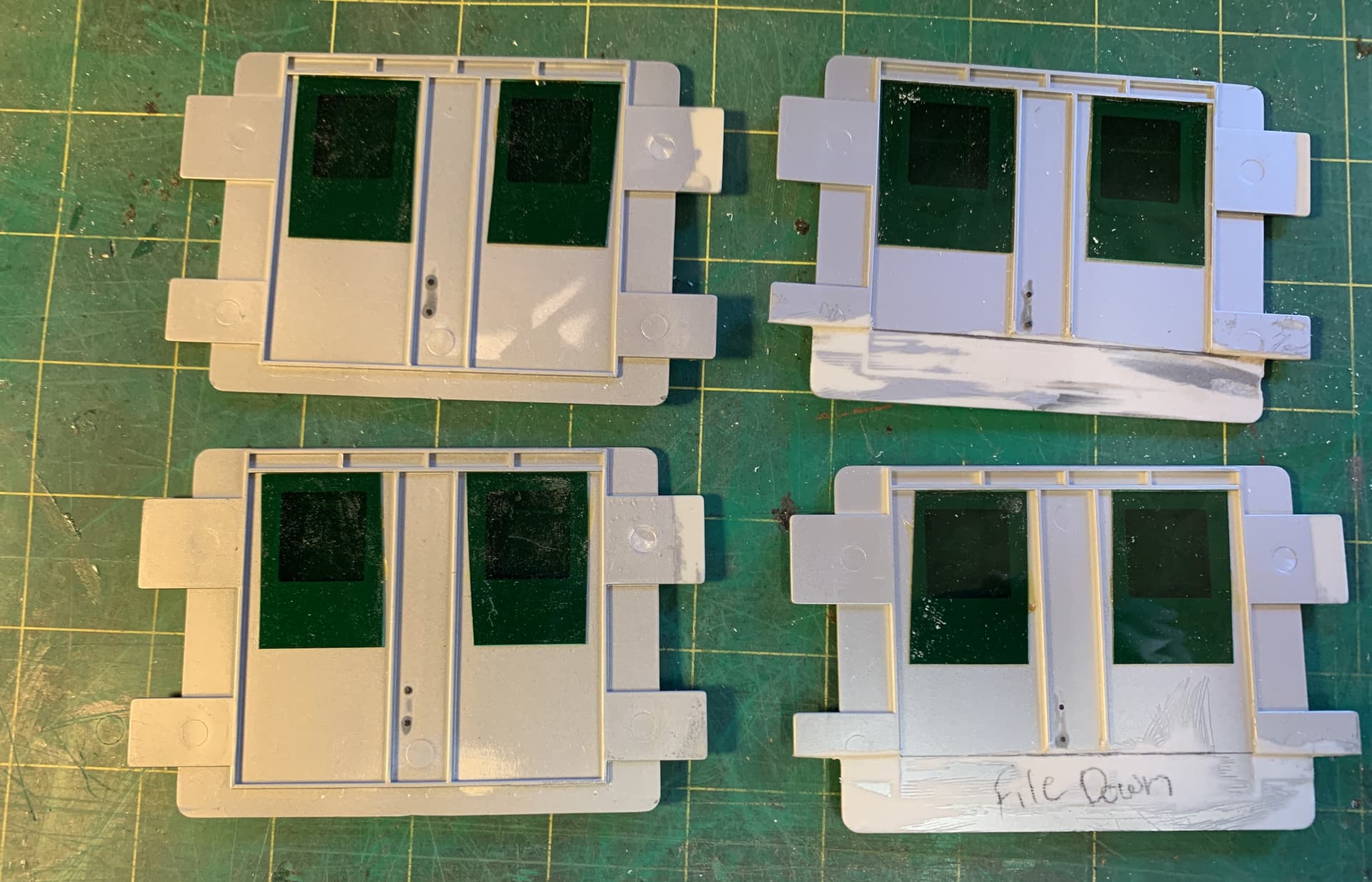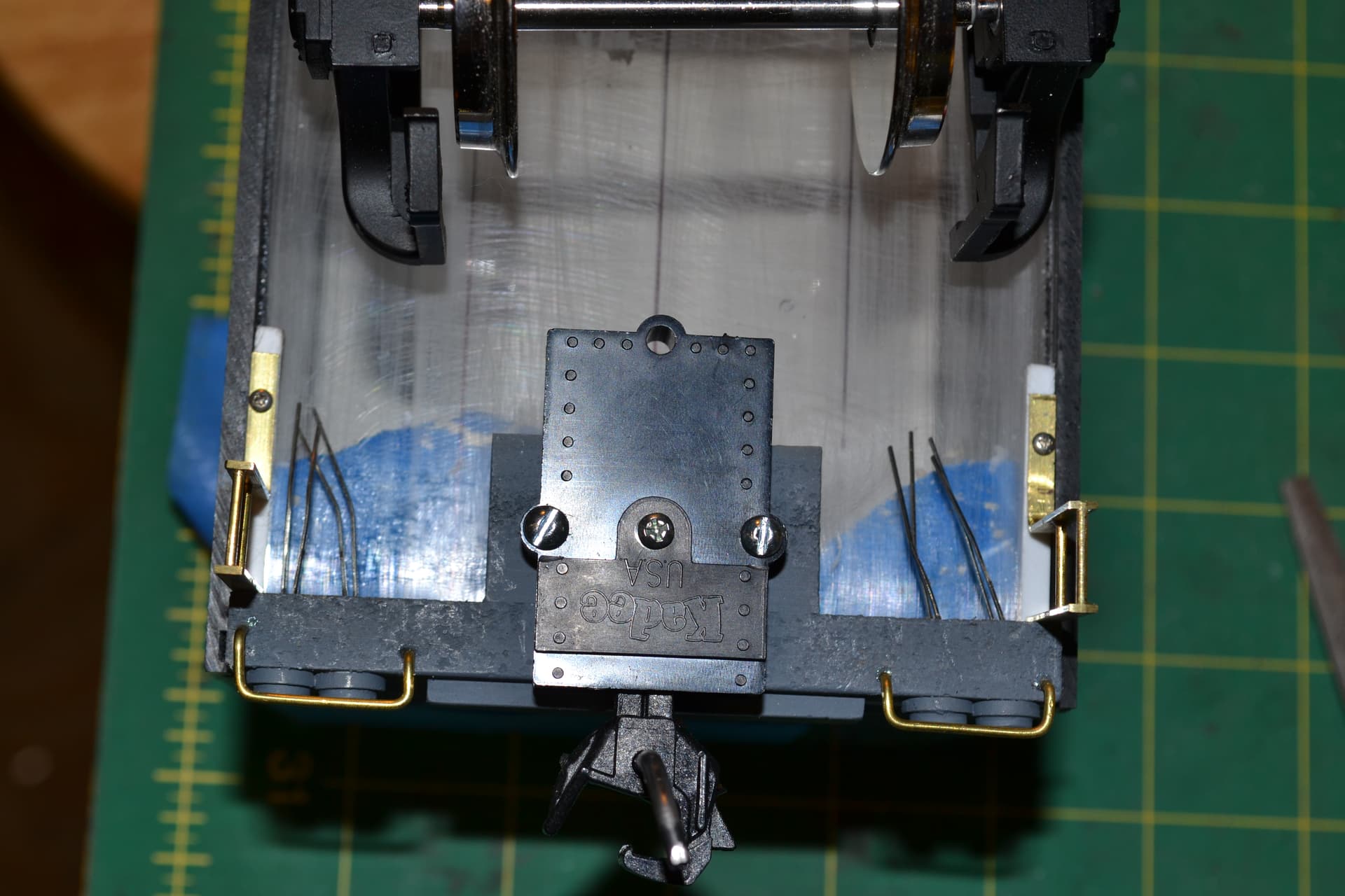 Note the bogie on the right shifted outward now aligning it with the center of the door opening. The bogie on the left is still factory.