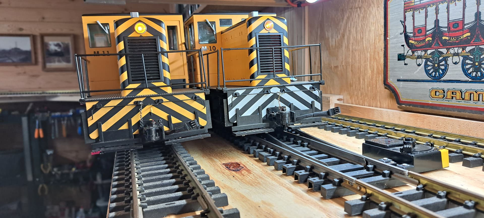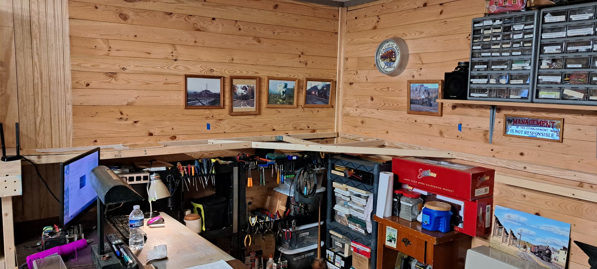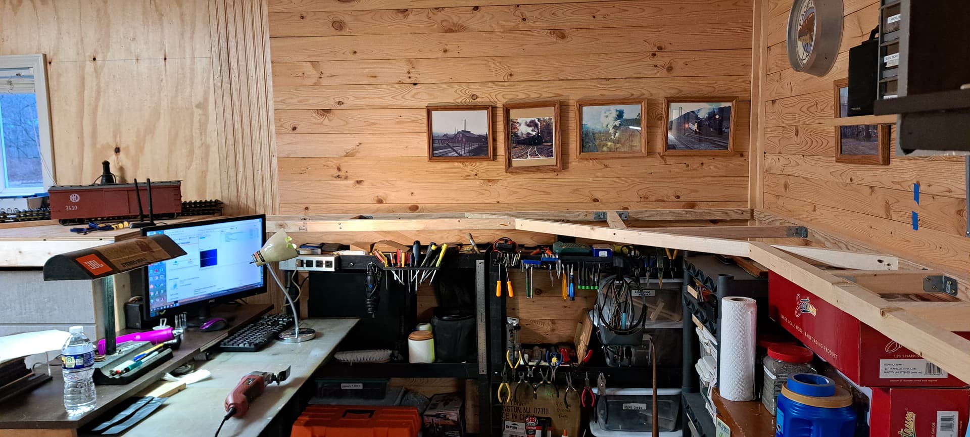 The area at left is above my big toolbox. It will be R1 territory and accessible only via the back track which is a ramp raising 8" between the switches.
