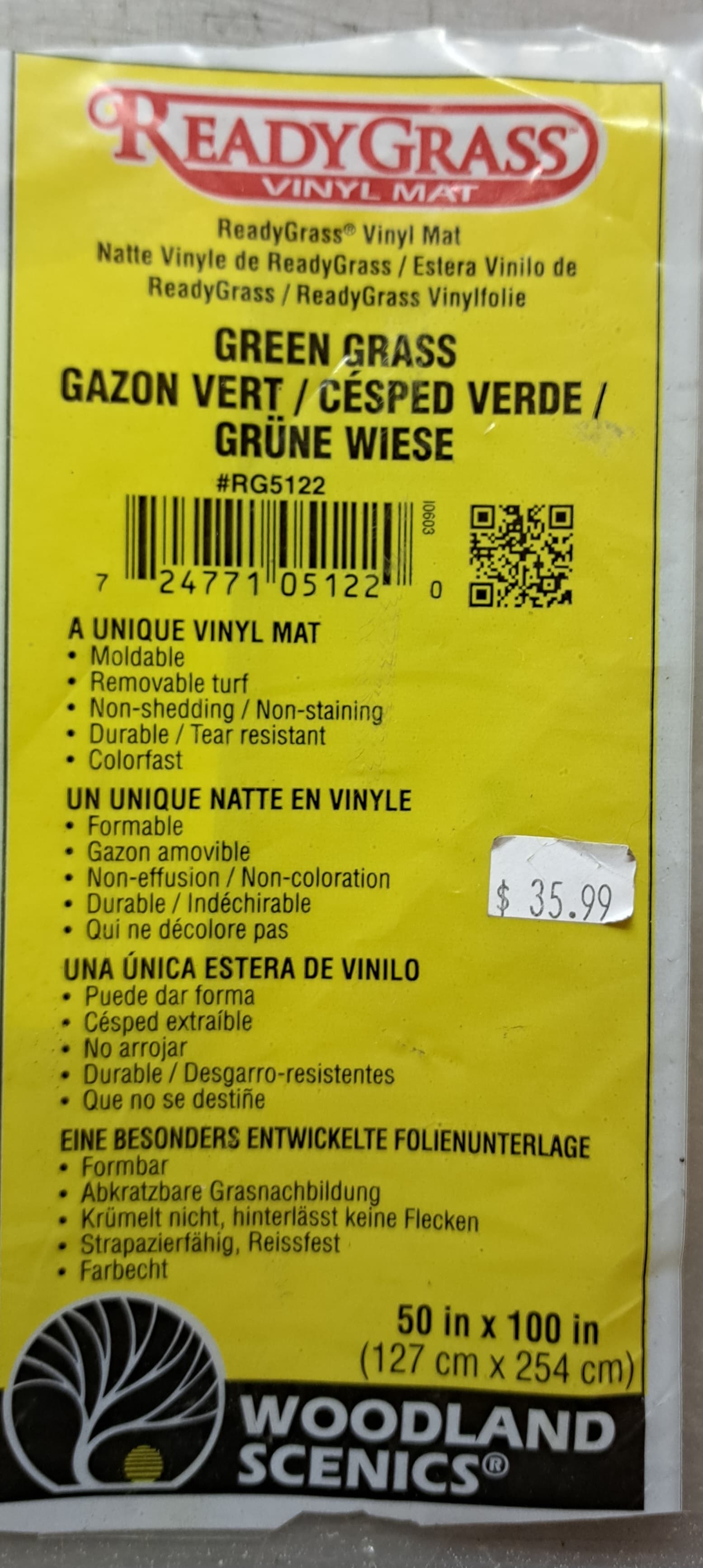This is pretty cool stuff. Way better than the old Lifelike grass paper. It’s vinyl and can be shaped with heat or scraped off for roads. From Woodland Scenics…