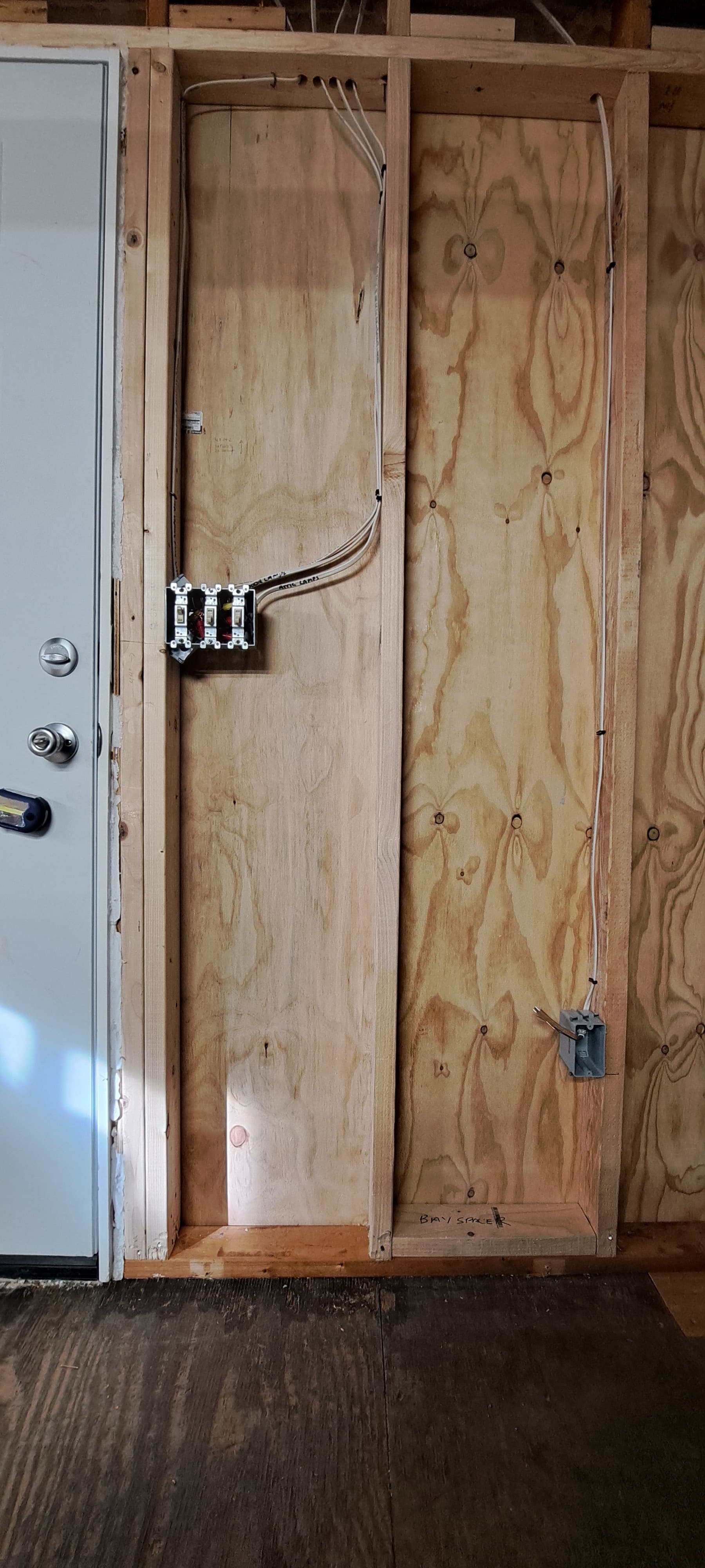 With the completion of caulking and painting of the front siding over the past few days, I have moved indoors for the winter. Progress shot as of yesterday afternoon…