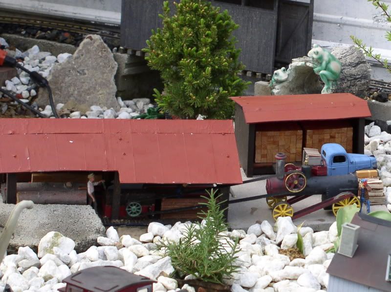 Somebody once said a garden railroad is never “finished”, they are always a work in progress. Now you gotta understand, I wasn’t really intending to do any major revisions this spring… but it turned out I was WRONG! First came a new sawmill, 5 new trees, and marble chips…