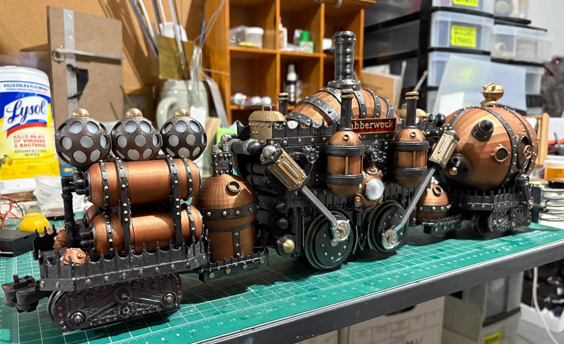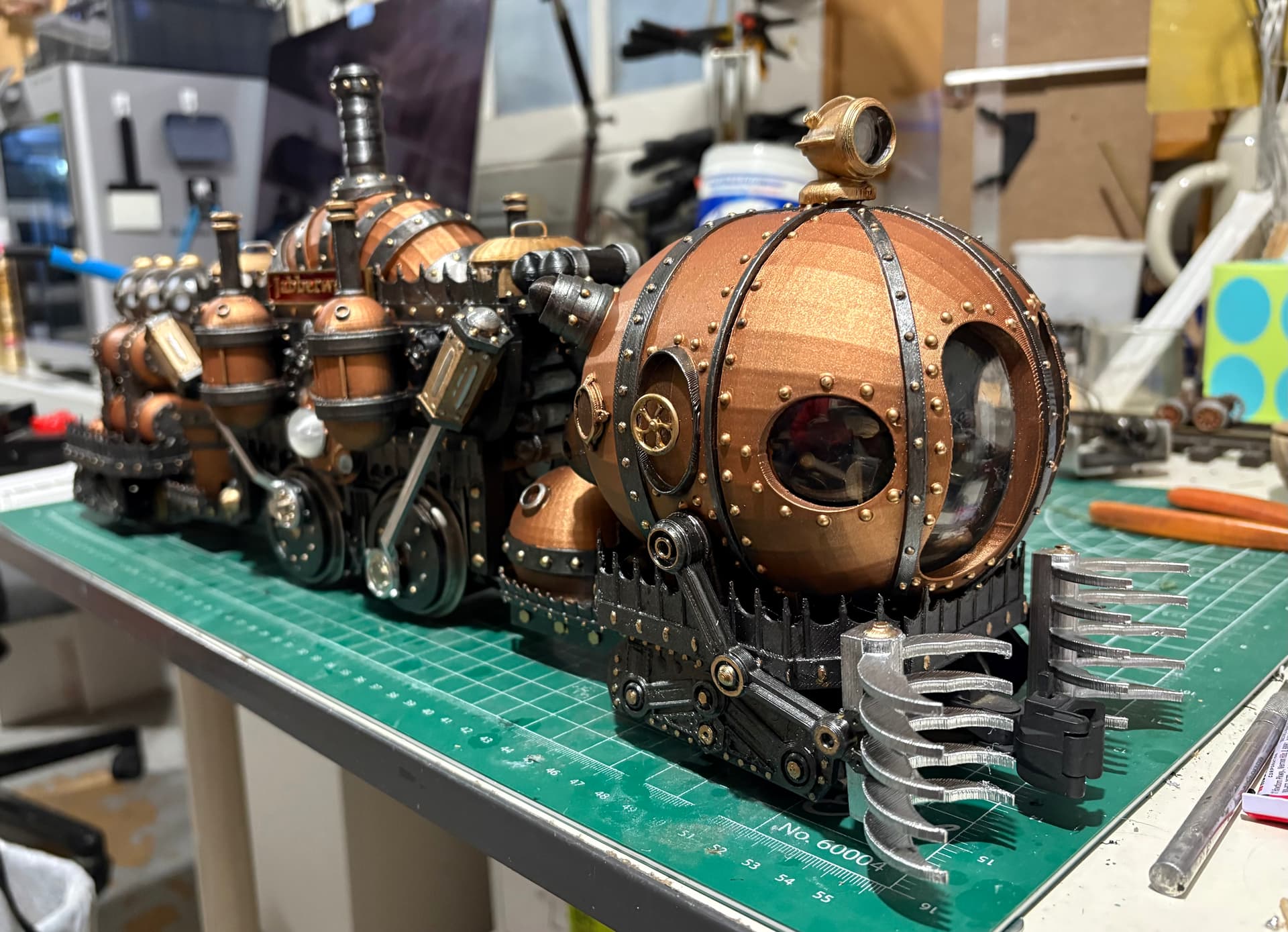Wow that thing is incredible! I was thinking it looked great in black but then you upped it with the copper. It’s the stuff of nightmares. Very steampunk.