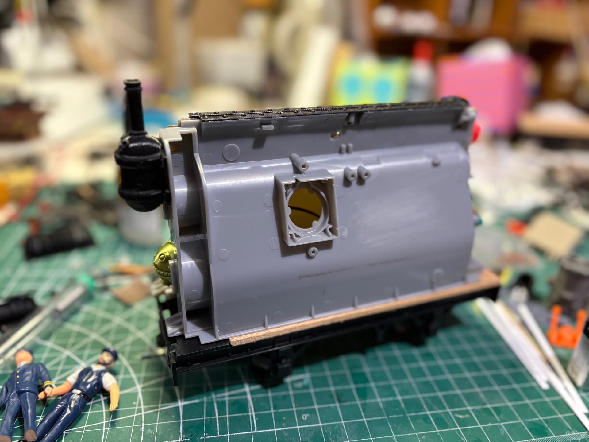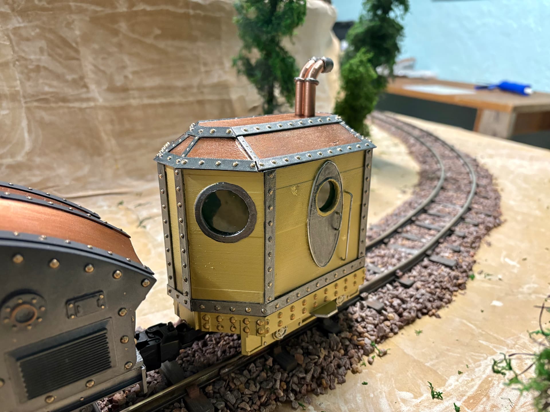 Finishing up the two cars for the consist and thinking there’s enough time left for a Steampunk Bobber Caboose!