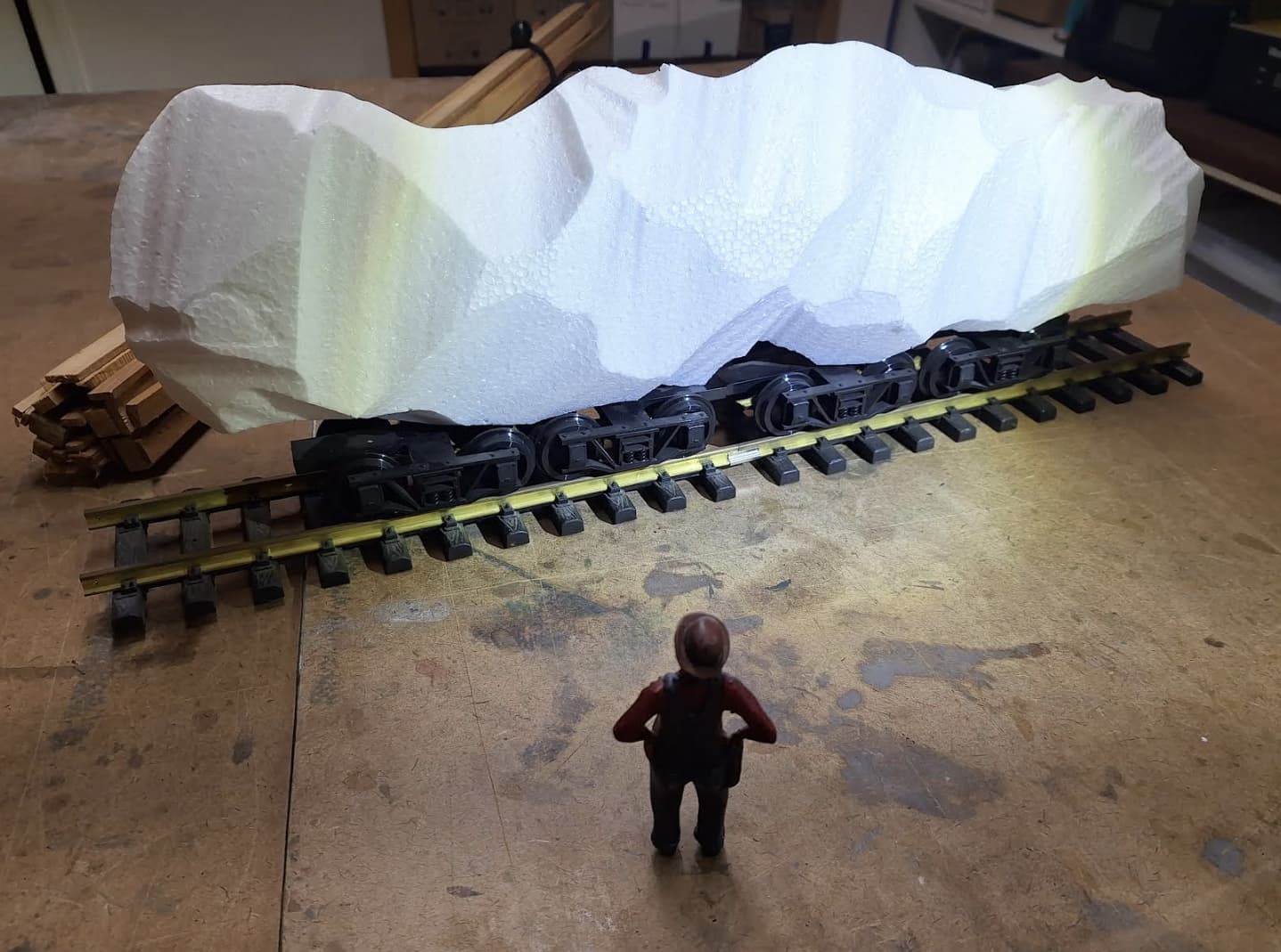 A bit of progress. After doing a rough nugget mockup, the engineering department said the rails would never survive. But, spreading the load by doubling the wheel quantity might work.
