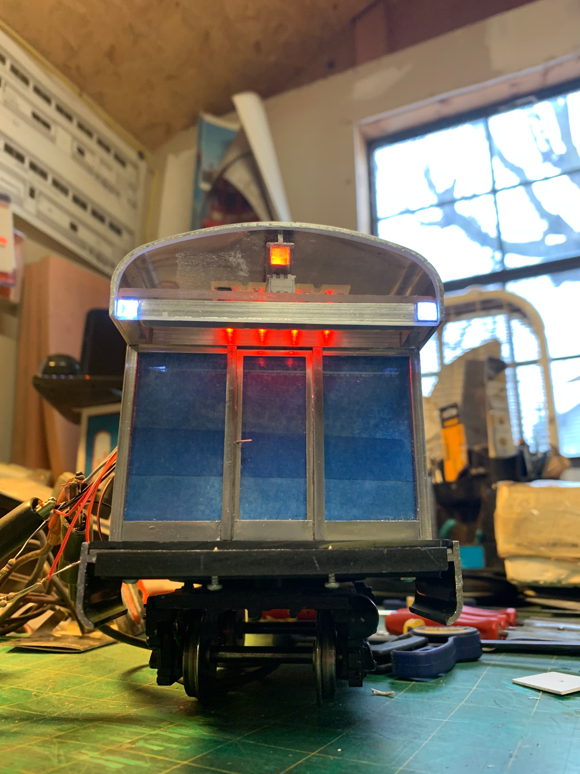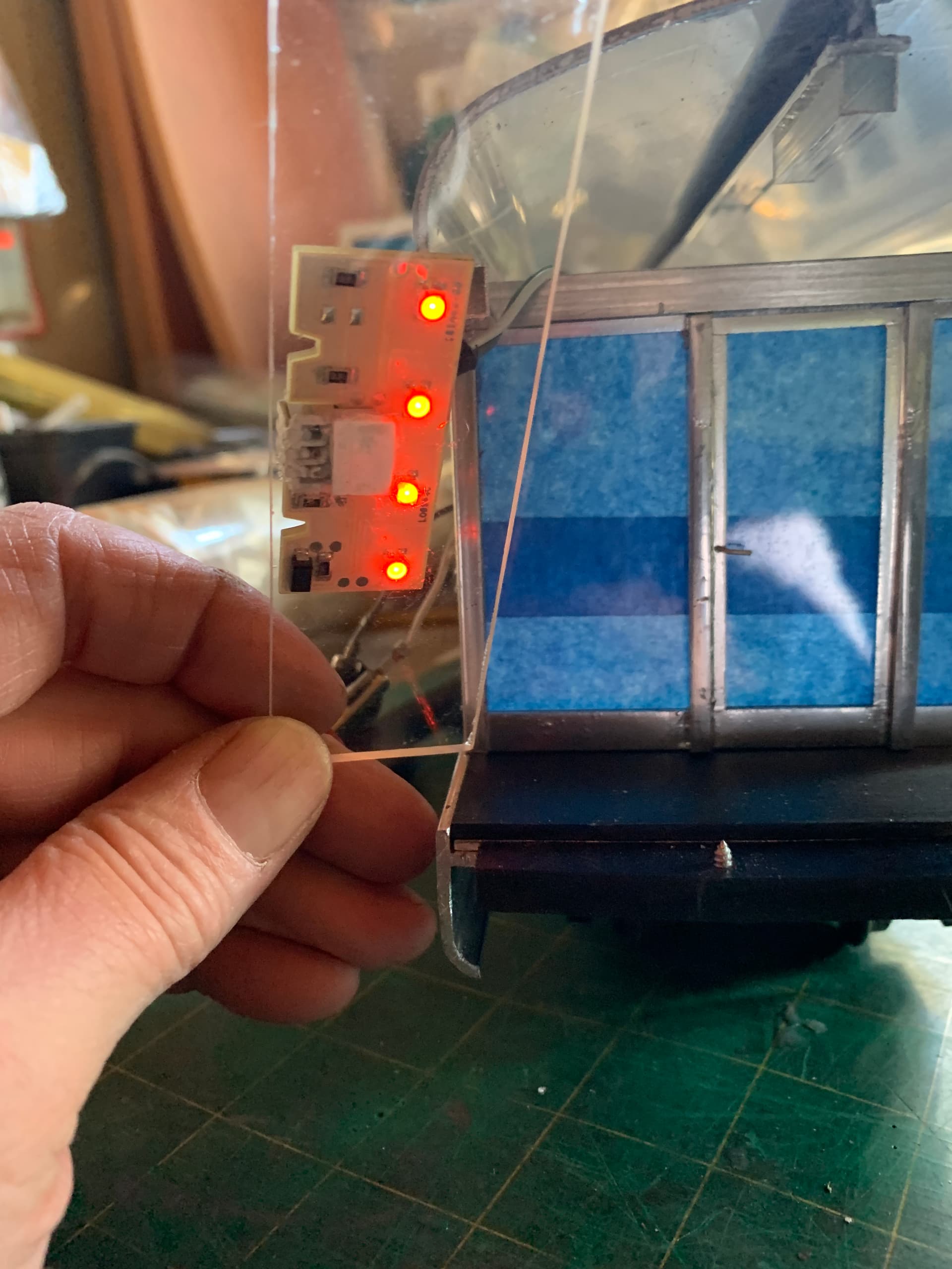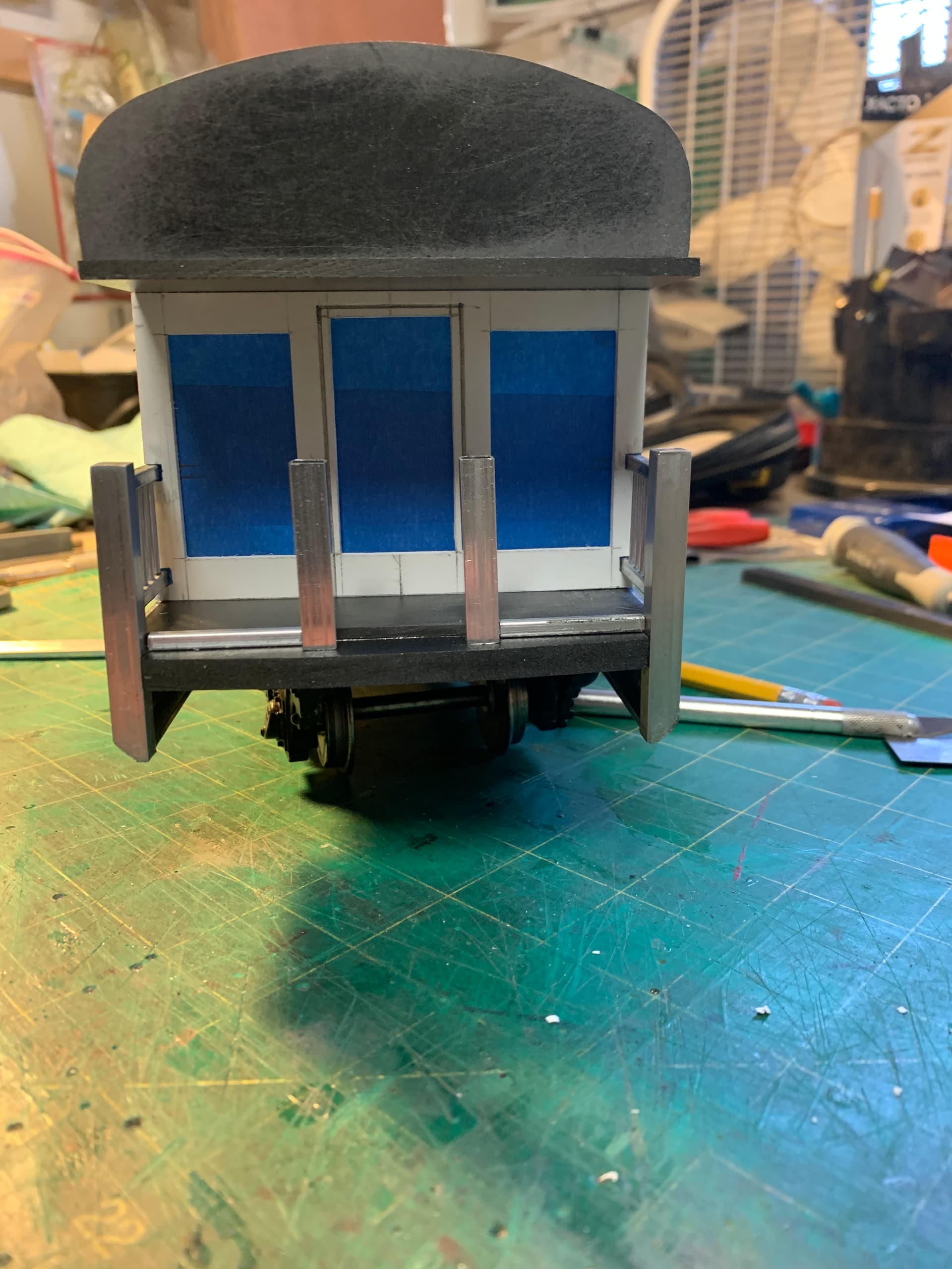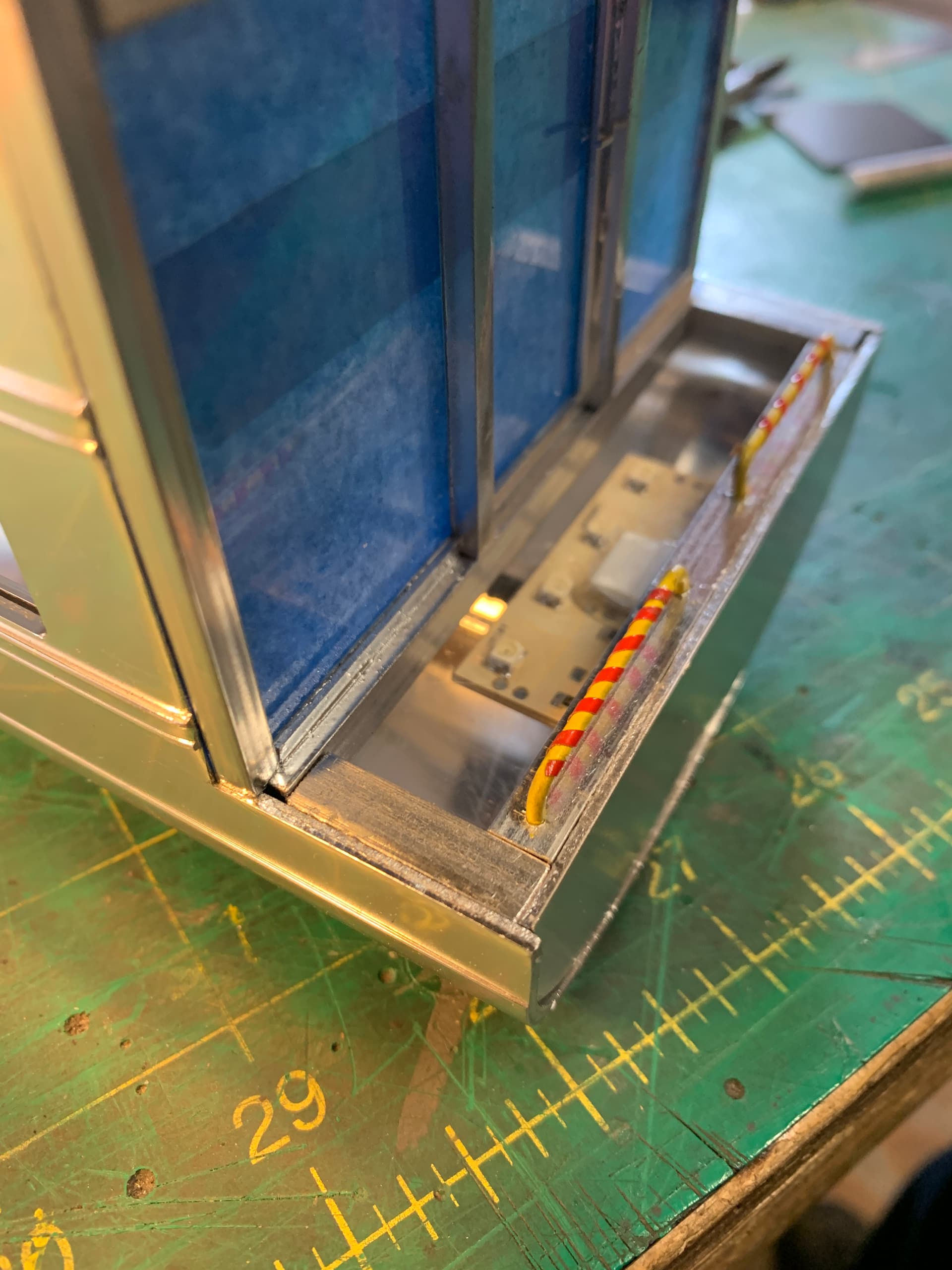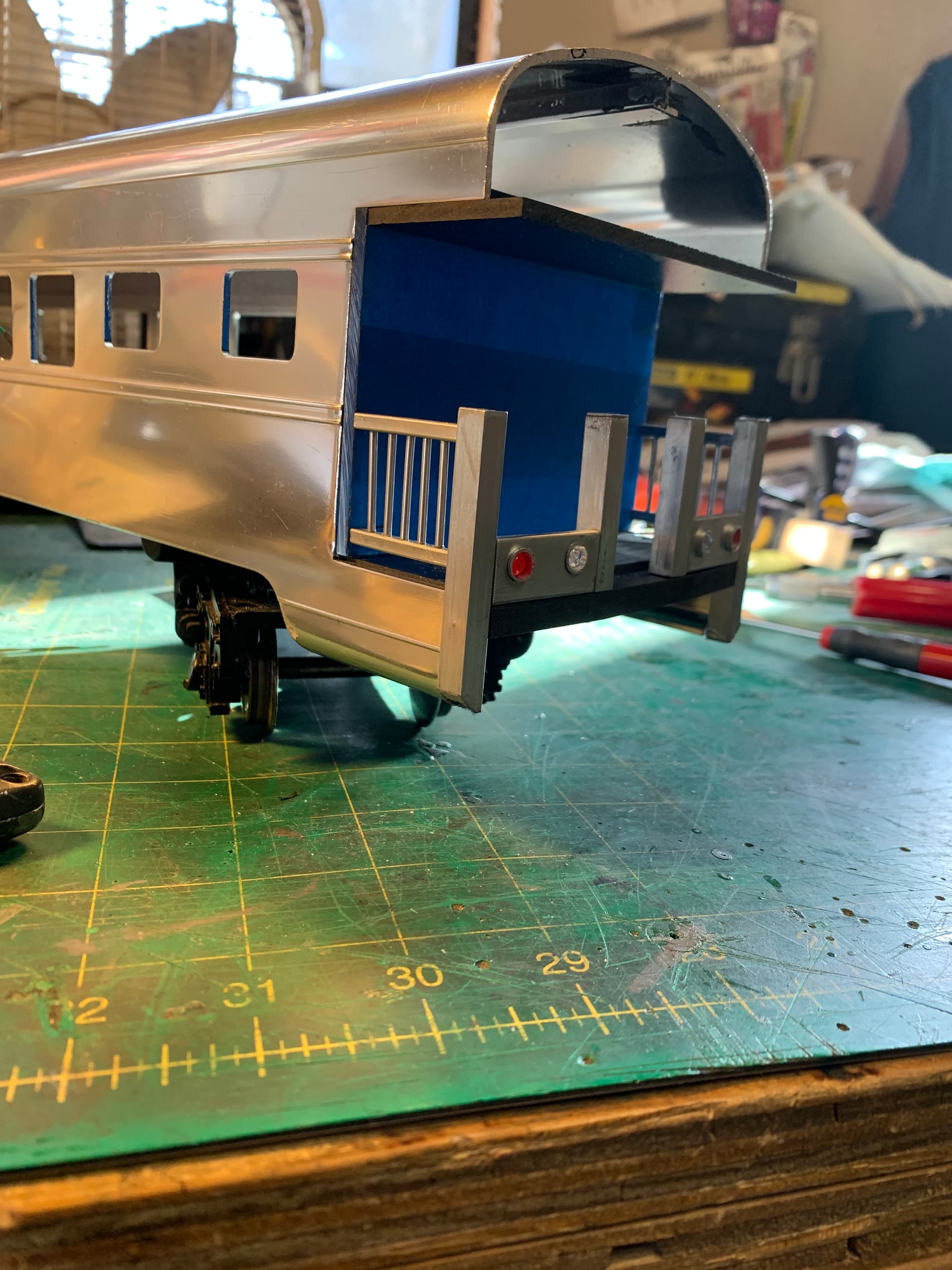I removed the mocked up end wall, scribed (best I could) and set it back into the car as it should be. Then added the 5/32 aluminum side caps to the acrylic with my favorite glue. Included both sides for Hollywood cause he always asks about the other side of the car.