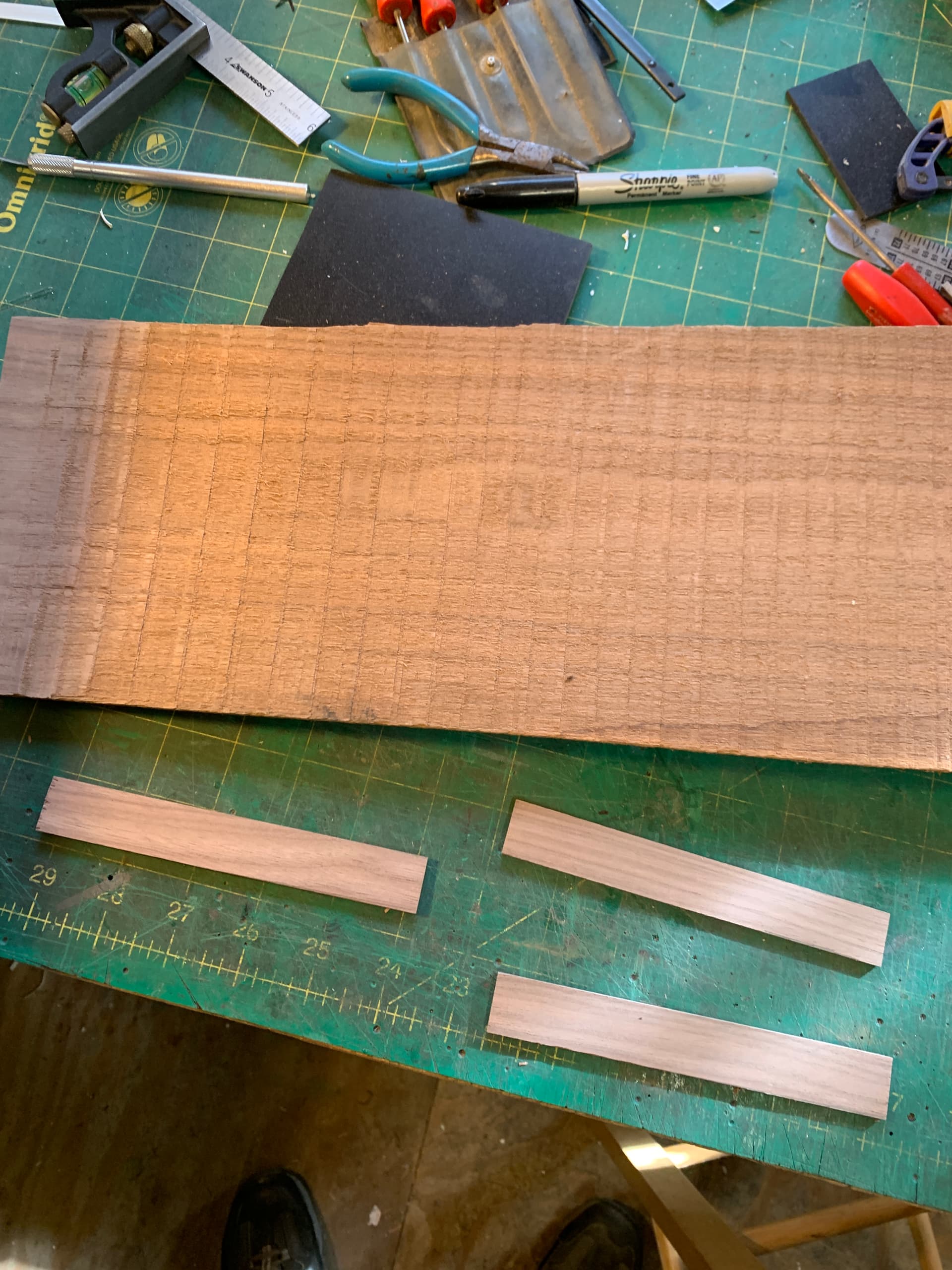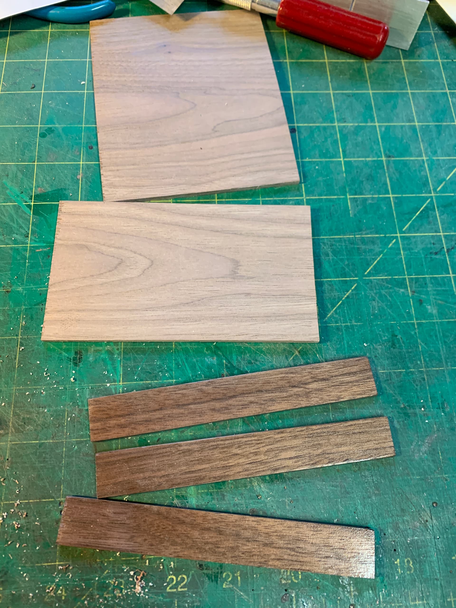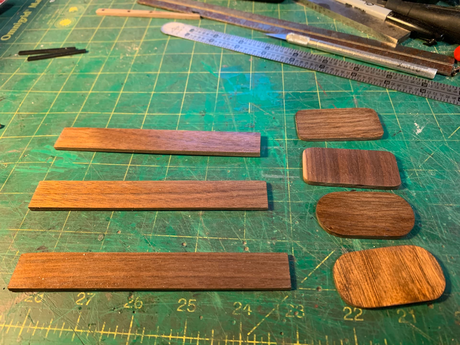 Very rough veneer from a local black walnut and a floor section from a heavyweight. I totally forgot about the brass tubing and even though it’s not the clean aluminum/stainless look it’s got the perfect shape!