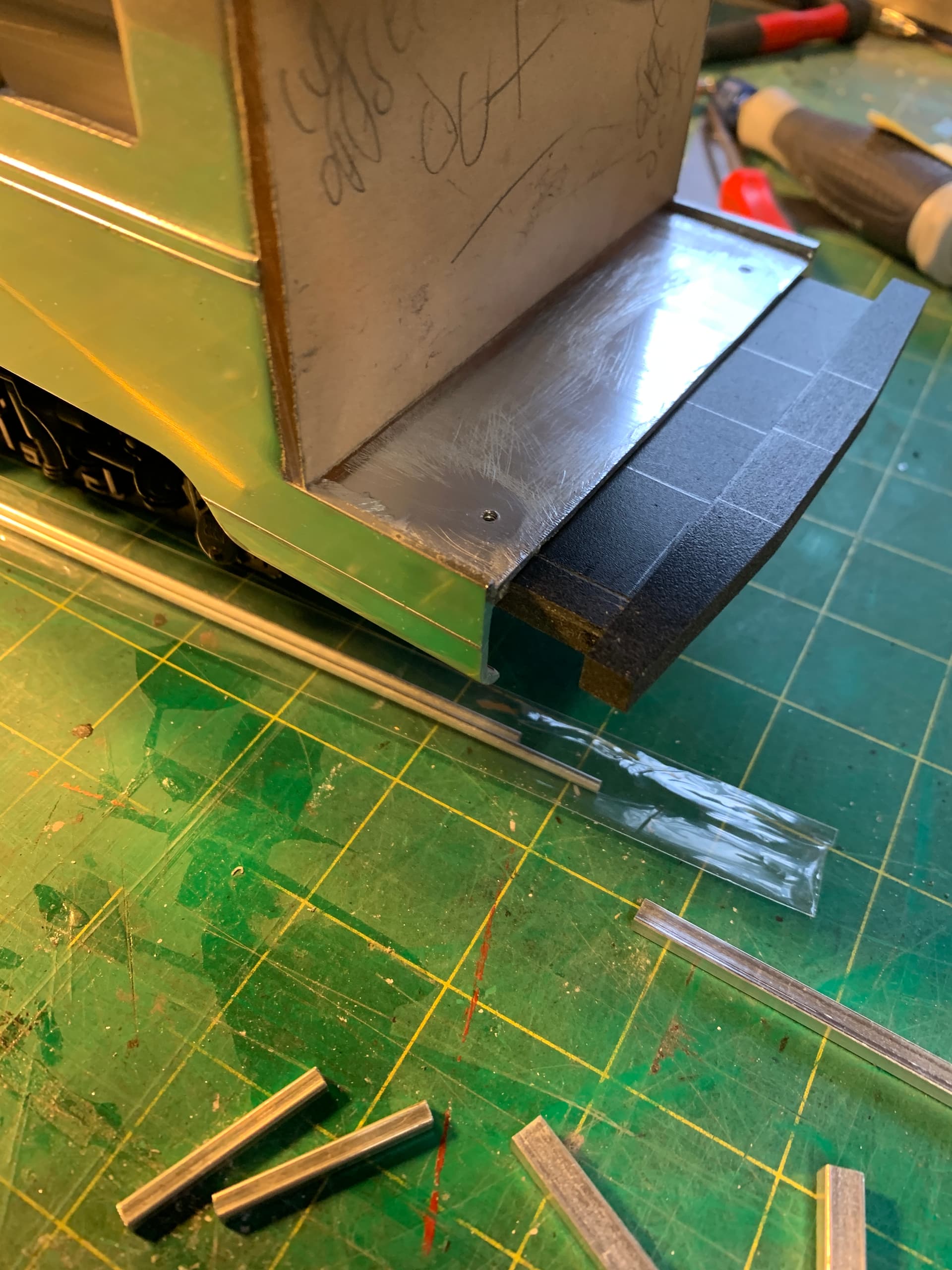 Had about 6hrs play time this weekend and did get a few things done. Figured I might as well work on the railing and get that out of the way. I’m opting for the Deco look of aluminum and I have some left over from other projects.