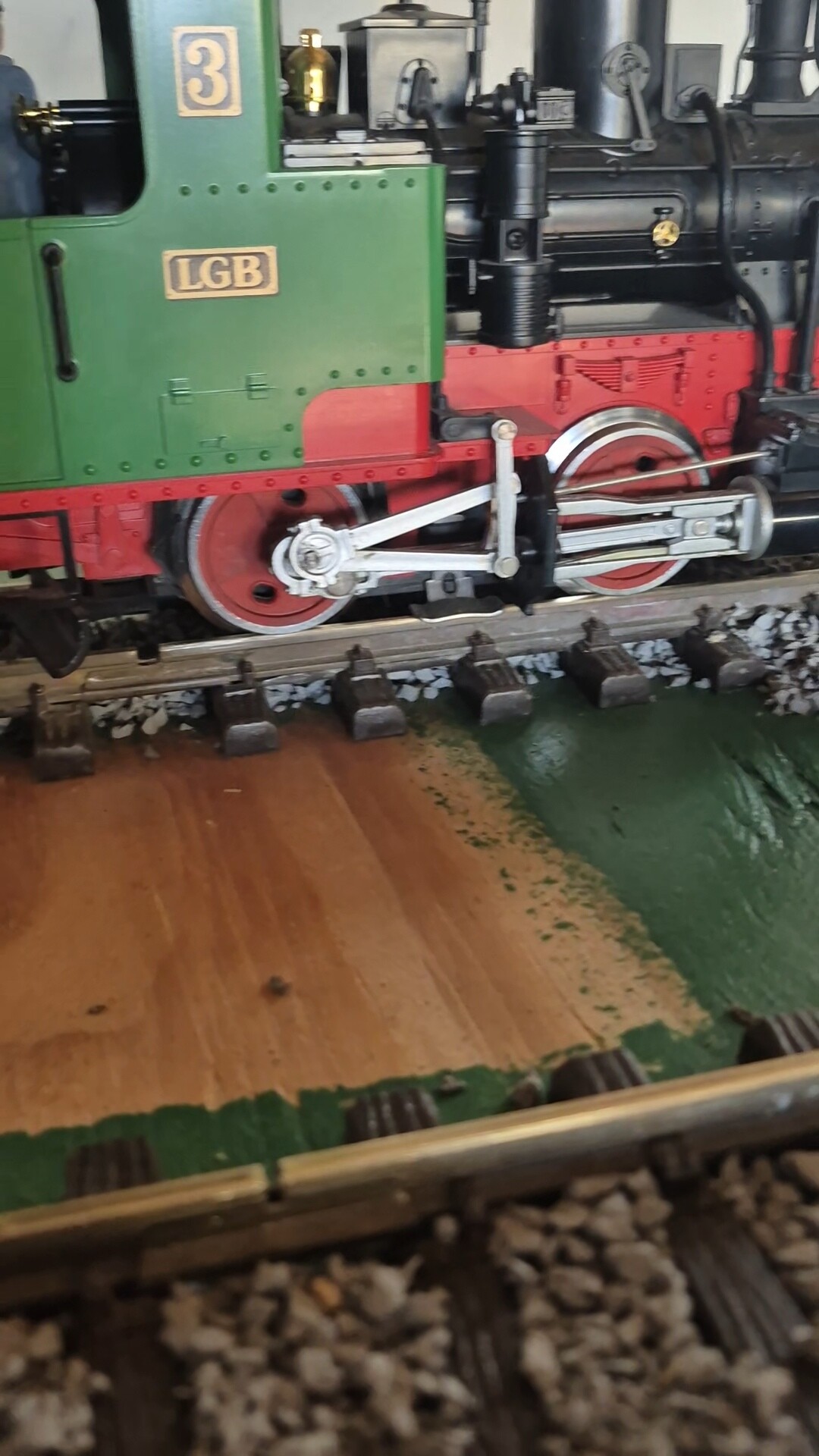 I’m working on my modules for Big Green, trying to make sure everything is going to be operational for the show in January. Yeaterday I was testing the track power and found that the branch line has a dead spot within a single continuous section of rail. I used my dad’s Stainz for testing along with my multimeter. The engine kept stopping or stuttering at the same exact point while I had the power connected at one end of the track. (See photo for where it stopped. note the space in the rail direct to left of the wheels.) Then, when I mlved the power source to the other end, the loco would stop over the rail gap.