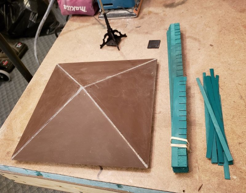And finally, the finished roof. It will be secured to the turbine frame with flat head brass screws eventually, but for now all the big chunks need to stay separable for transport.