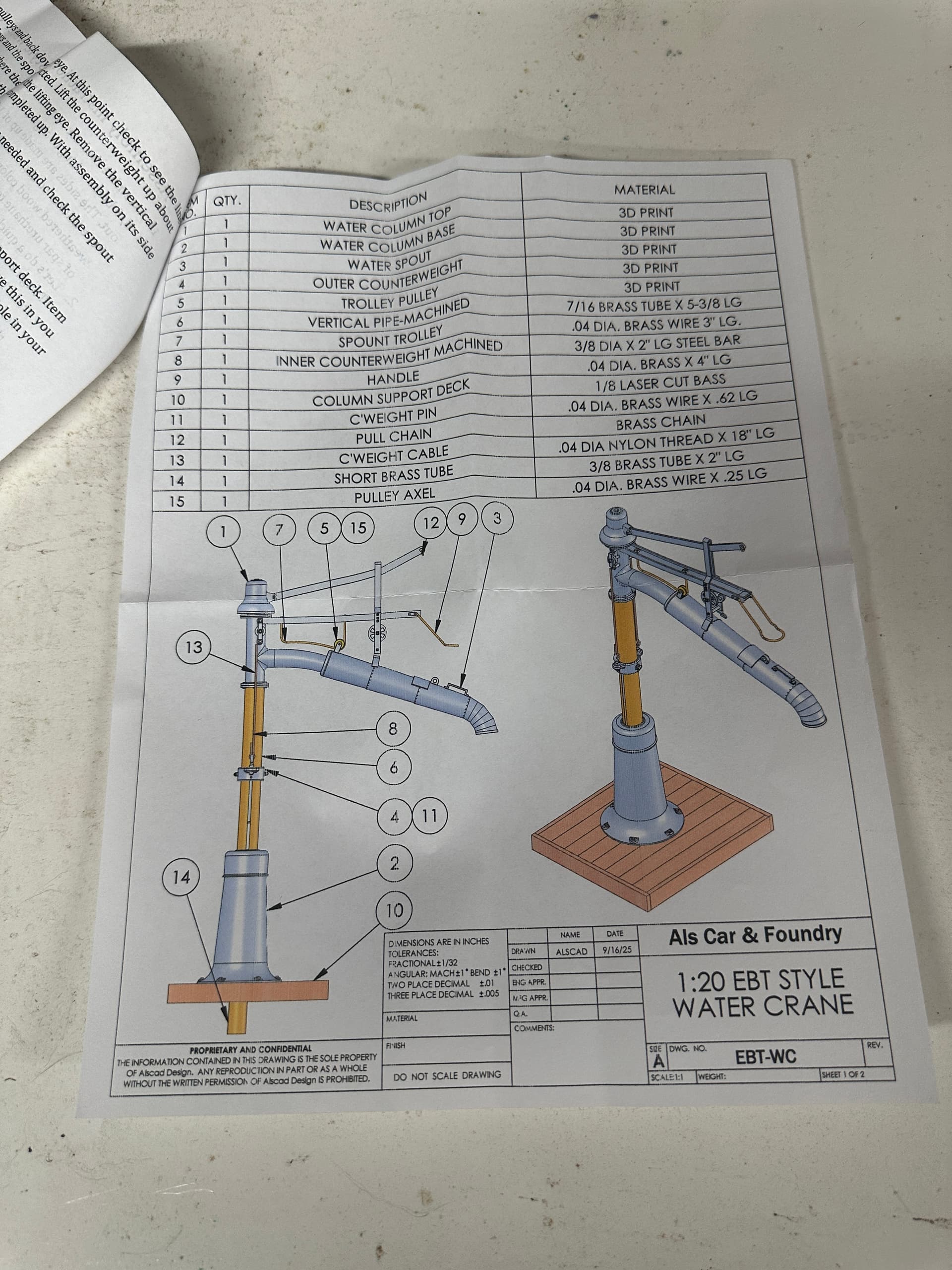 At this year’s TrainOps, @RGSNH was kind enough to present me with one of his kits for an EBT style water crane. Since I just uncovered my workbench again, I decided to start assembling it.
