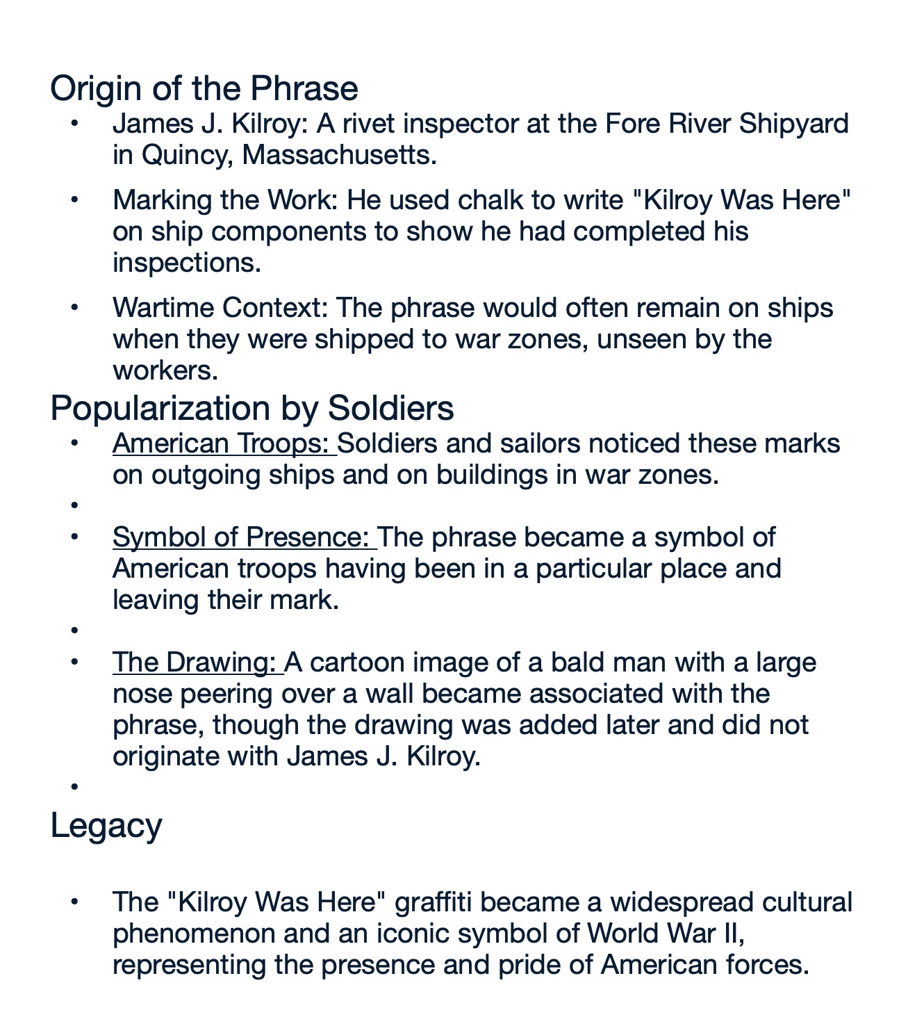 I have a USA reefer with factory “Kilroy was here” I was curious about the meaning of that so I
