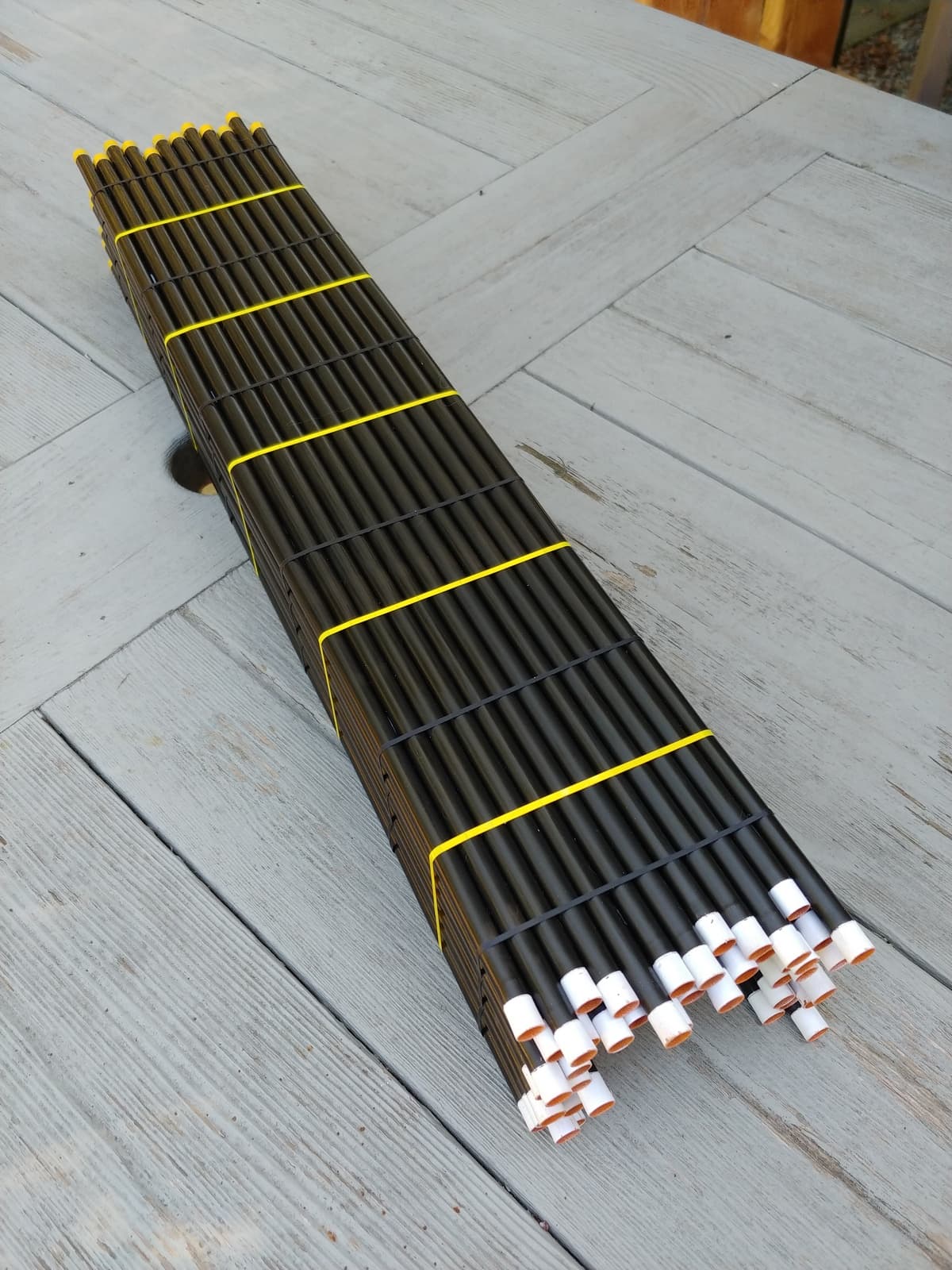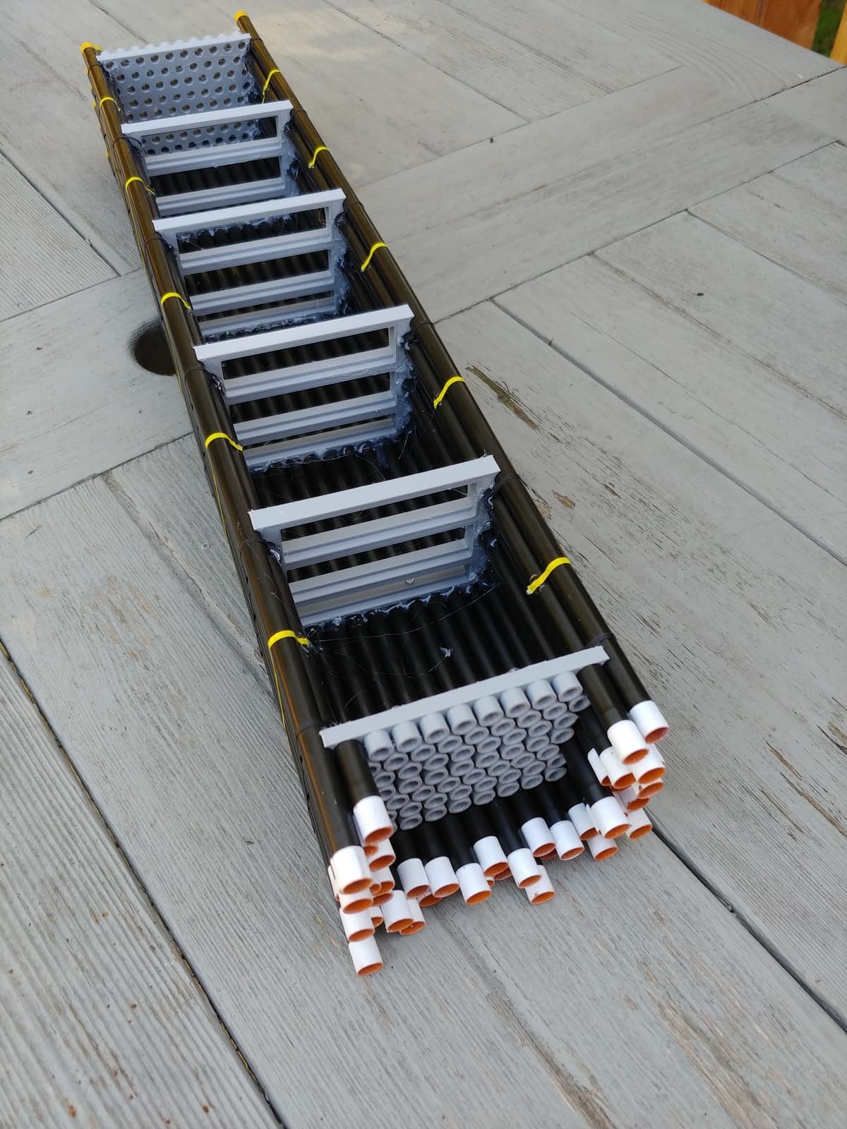 According to my research, the most common length of the pipe is 45 feet (18.6 inches in 1:29). I have procured a box of 500 Poly King “giant” 20’ black straws and 3d printed appropriate end caps.
