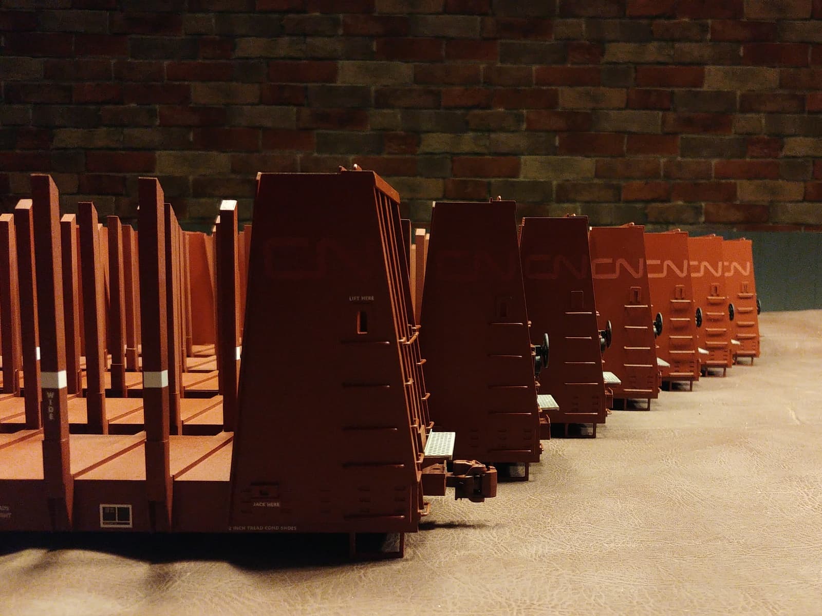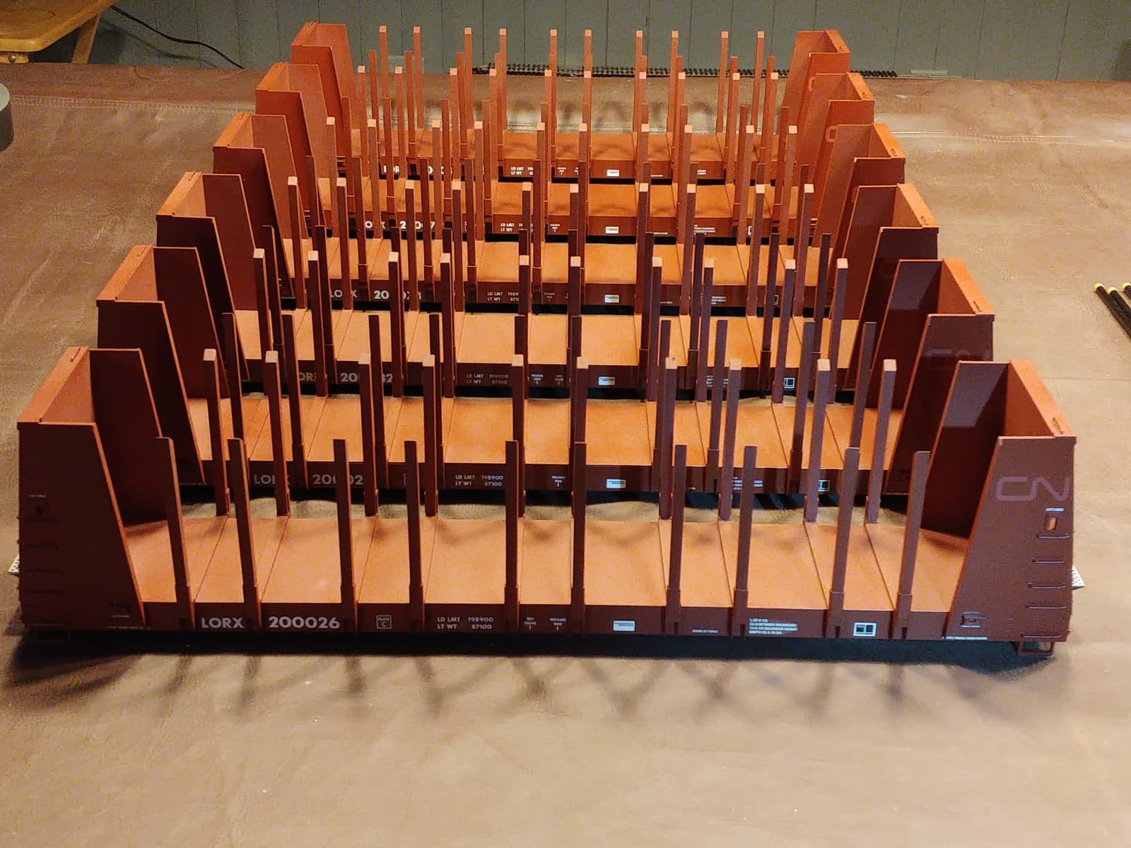 My latest rolling stock project. I saw an ad for an HO scale model and really love the look of the large trapezoidal bulkheads. I enjoy building multiple cars at once so after getting the first one fairly together, I elected to build 6 more.
