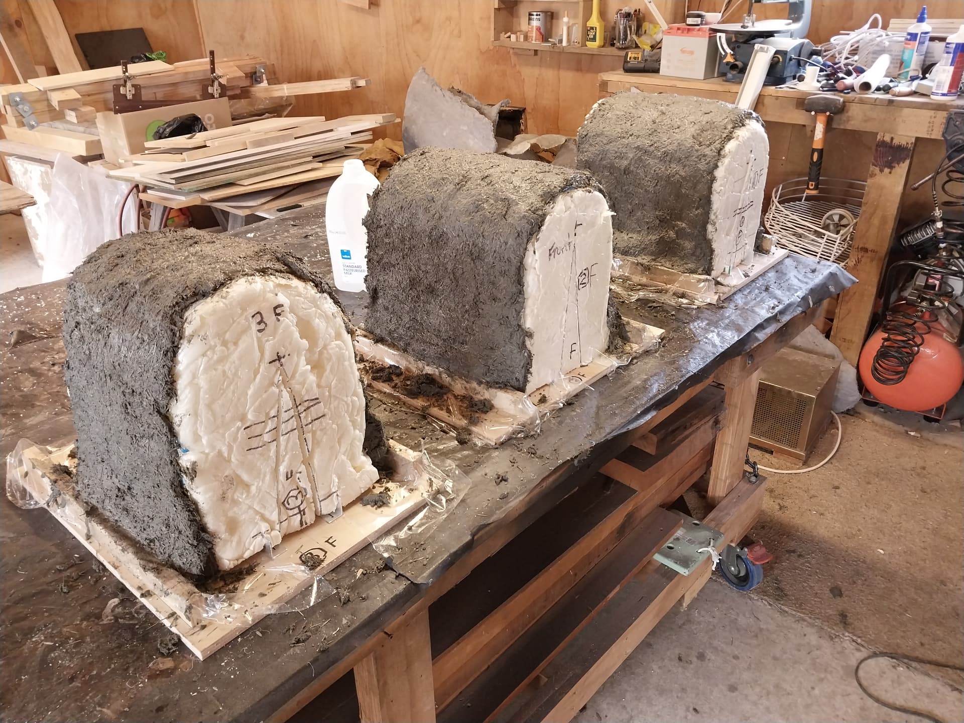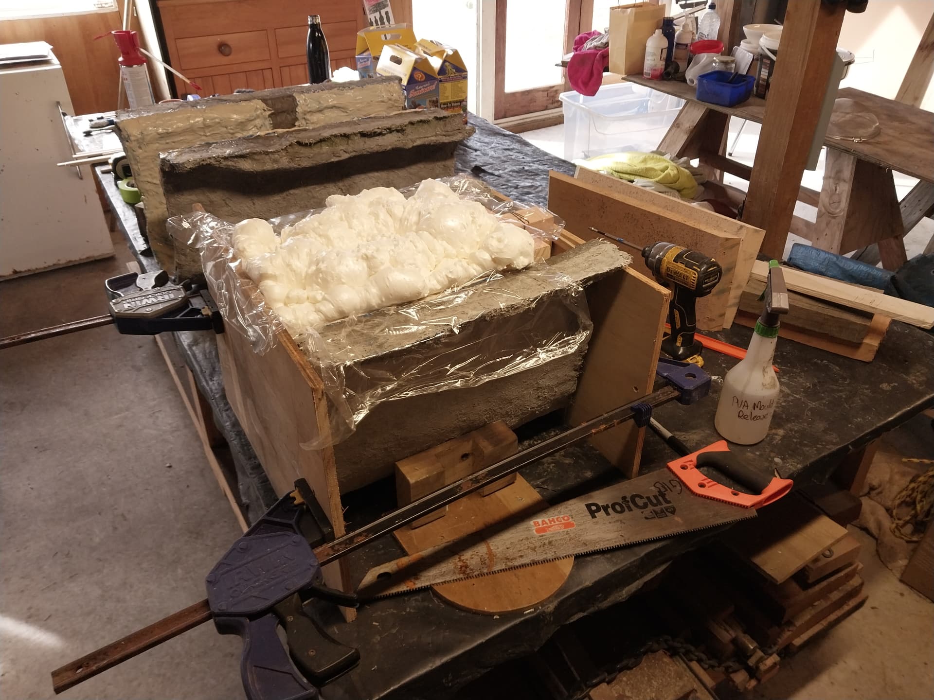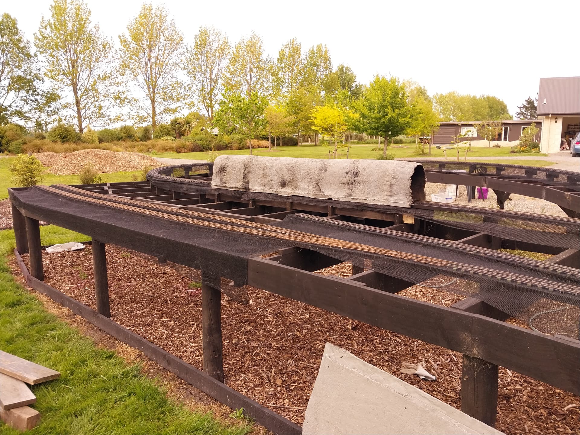 I’ve also made good progress on the tunnel project. Ever since Korm posted his styrofoam tunnels I wanted to make some in concrete for outdoors. I’ll post the gory details in the concrete casting thread, but here’s some highlights.