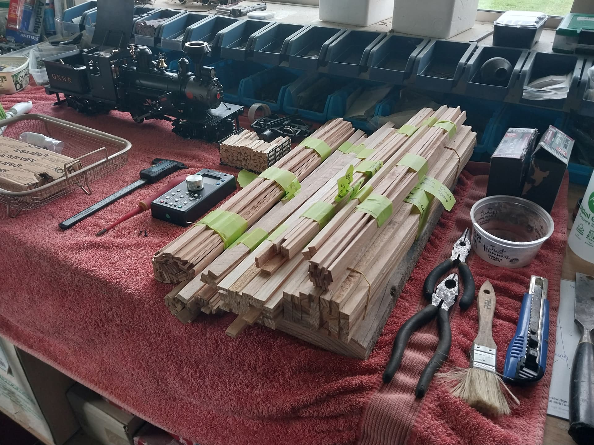 The coal bin inched along too, got some some timber cut. Need to somehow find space on the bench for assembly.