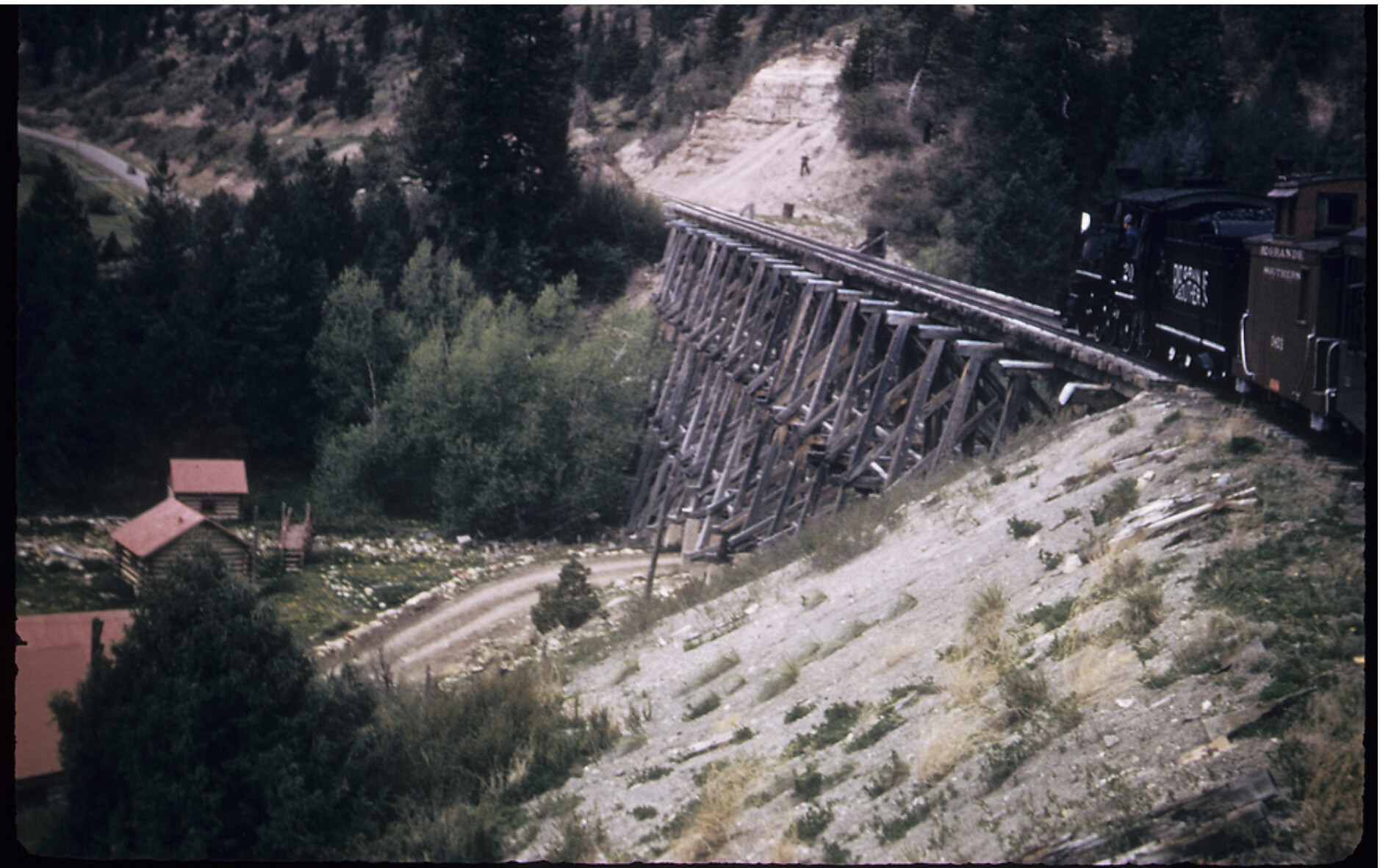Your first pic is 45A after it was converted from having a Howe Truss in the middle circa 1917. Clue to this 45A bridge is the whitish timbers over the stream, and above them on the trestle-both these timbers are larger than the other horizontal timbers on either side. RGS Volume 3 has at least 2 pics of the Howe with the “new” trestle being constructed, here I want to use the word interstitial, as both the Howe and the trestle are in the pictures at the same time.