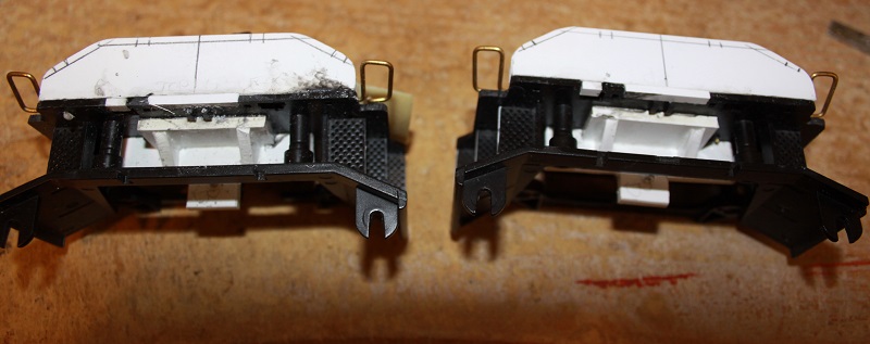 Well, trucks are weathered, and air reservoirs are mounted and weathered. Time to install the LED’s and small details.