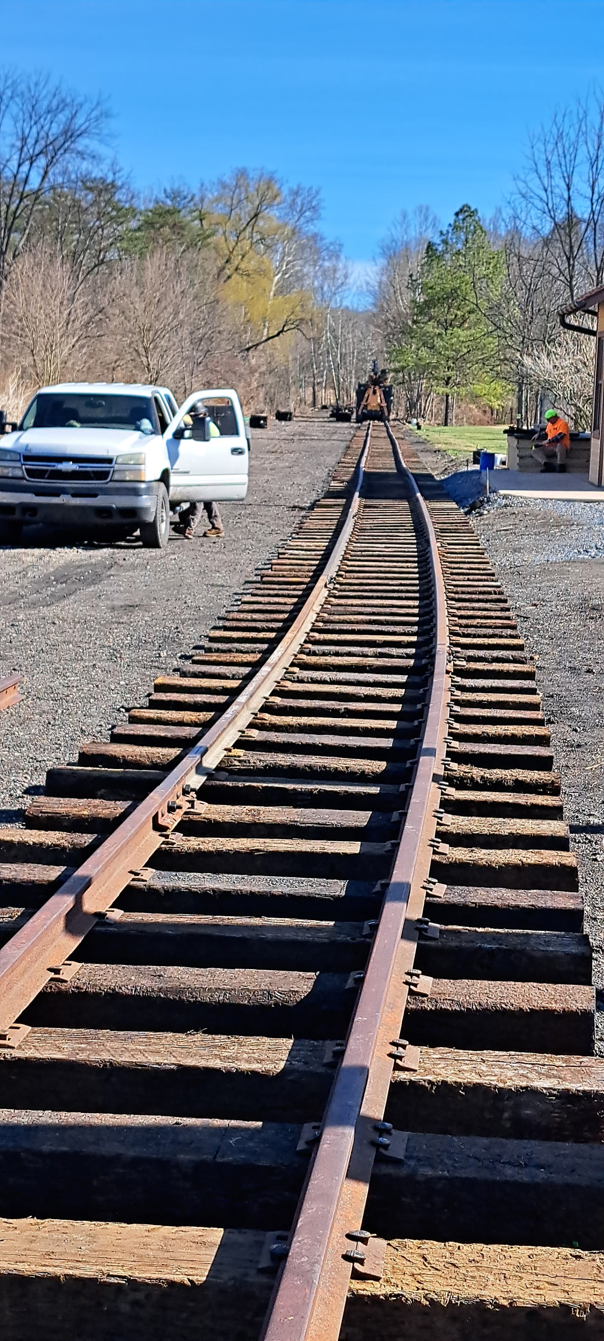There were 3 tracks at the station. All three cross the road. They are a freight siding which is what we are building now, the main, and the Narco siding. The Narco spur is nearby, I think a little North. No current plans to add the Narco siding back in. Both sidings were run-arounds with switches at both ends. There is a Wye a little further south beyond the tank and the bridge. The tail isn’t long enough to turn current passenger trains, but would accommodate a steam engine and a caboose. That would make for some exciting switching action!