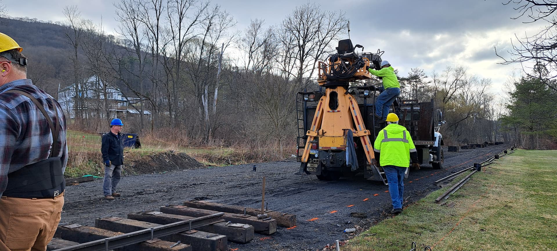 At the end of the day. Roughly 300 feet of track down. Most of it gauged and about half of it fully spiked.