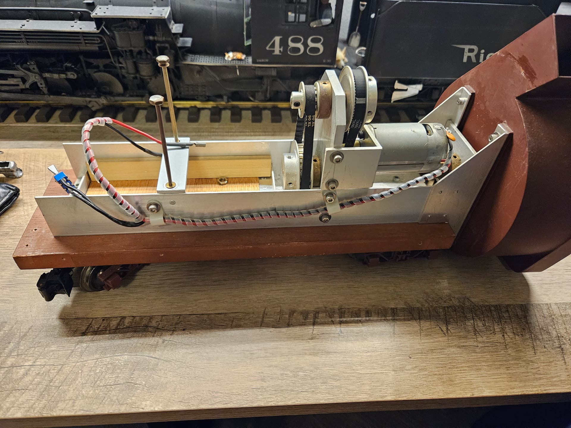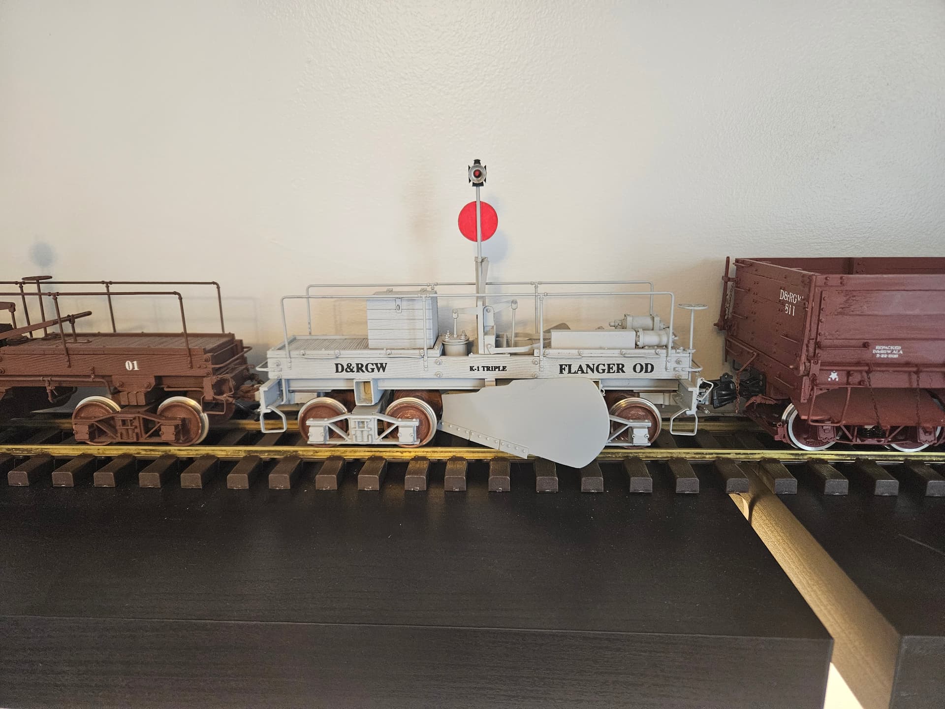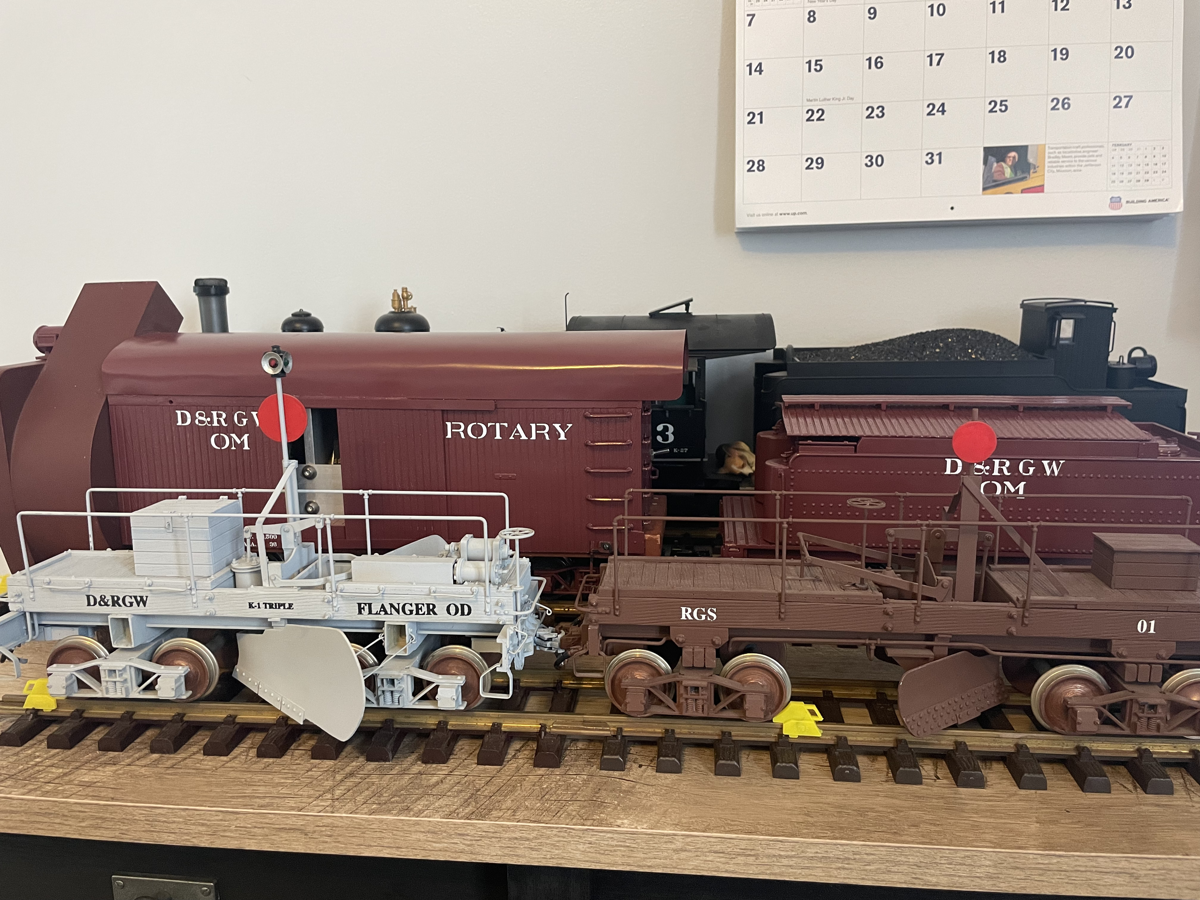 I recently acquired an operating rotary plow and RGS & D&RGW flangers. I am not sure who made these and was wondering if anyone had any information. The rotary plow is pretty powerful with a big 6v SLA battery and is made of brass. I made the rotary’s body and modified a Bachmann tender for the plow. The flangers appear to be wood construction. Appreciate any info folks may have, thanks!