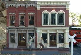 The commercial and industrial structures are made the same way as the mill. One side is very detailed, two sides are detailed, but with less detail, and the third side (back) is open. The two can be glued together at their backs to make a larger structure. I used “sheet bricks” to do the backs and kept them separate.