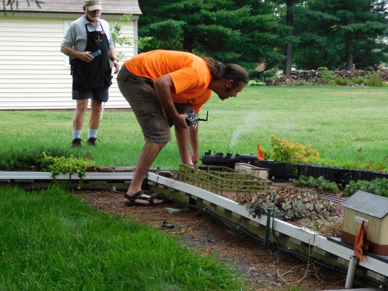 Randy Lerhrian showed up Friday nite with his family and gave us a special treat saturday morning with his EBT coal drag live steamer he bought from Pete Thorton.