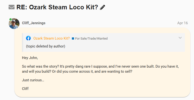 But “John” said the loco had already been sold. Interesting that he was able to delete the Ozark post entirely (from what I can tell).