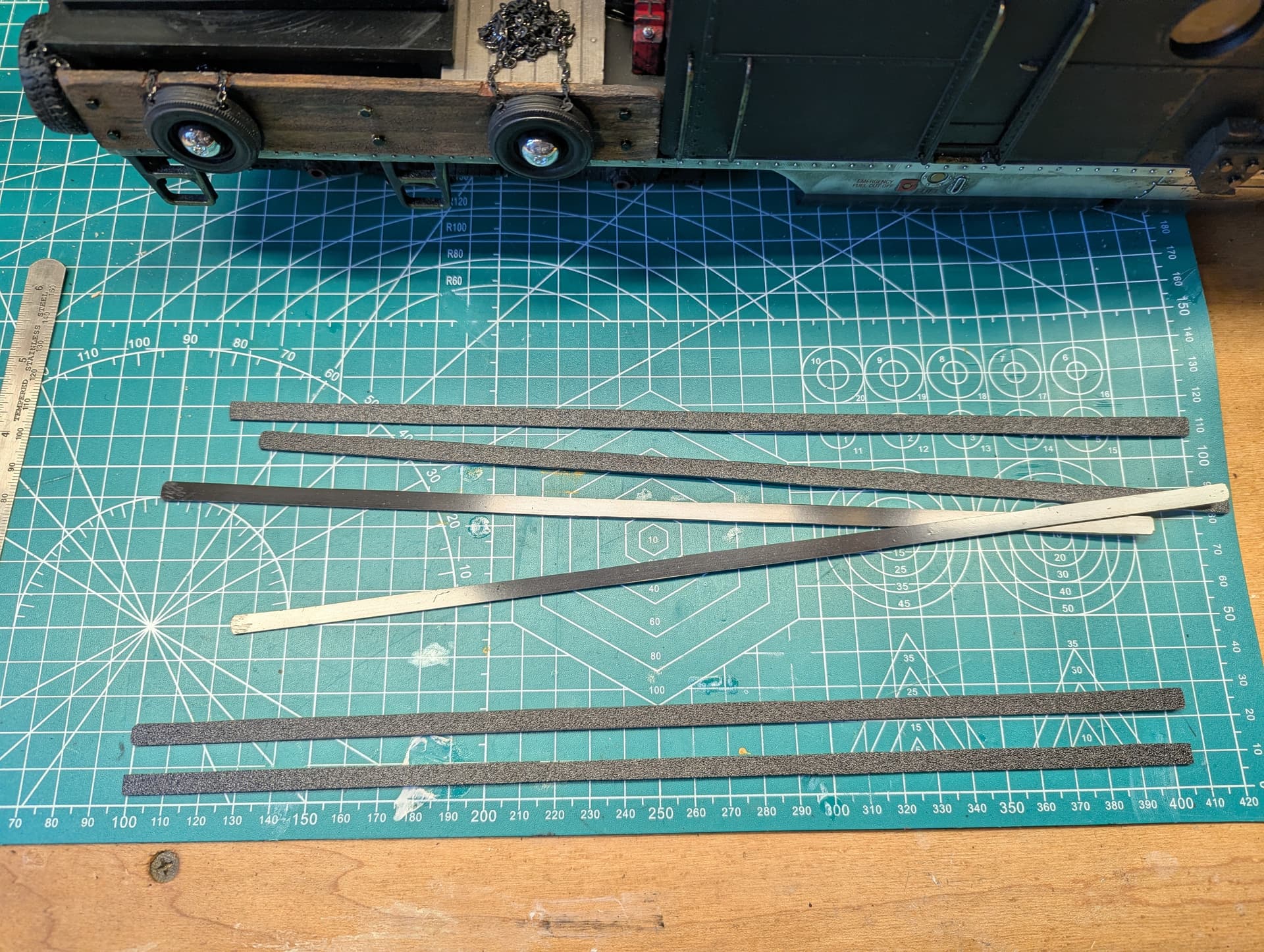Started today by cutting some ABS strips to approximate 2x6 planks. Mine are 6mm wide.