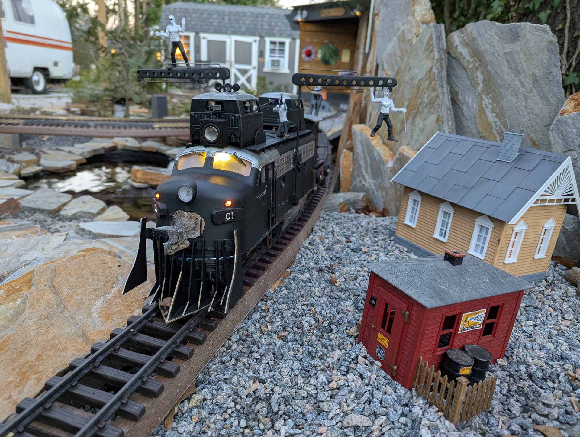 I can imagine a new event pit at one of the large scale train shows, where people could participate in a sort of railroady demolition derby. Oooh, with a nice HO or Lionel layout in the middle where those guys try to escape the large scale predators… yeah, that’s the ticket.