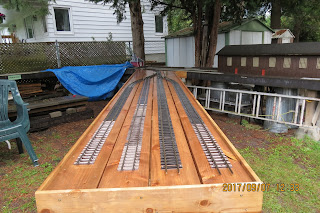 The actual construction started on the just passed, holiday Monday, and completed on the Tuesday. Even the track and switches were in place at the end of Tuesday. Pictures have been posted by several people, but mainly by Steve Mckenzie/Mike Hamer.