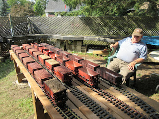 This whole project came about, here on our OUTDOOR operating railroad, when the ore train arrived at the yard at one end of the railroad.