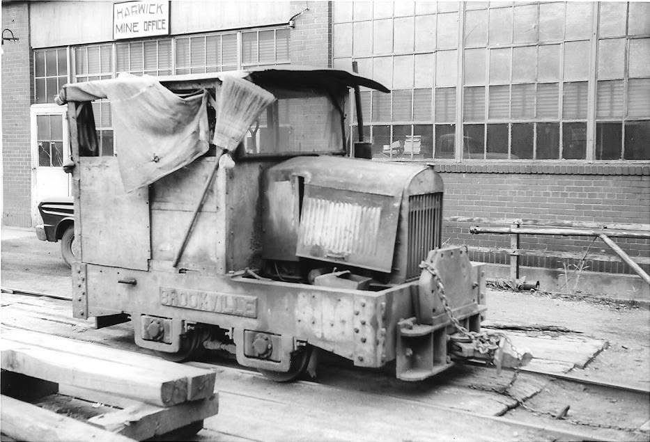 Ran across pictures of this cute little Brookville locomotive that worked at a mine in PA. Lots of neat details. There’s a couple hooks, a shovel and pick, and a length of chain on the left side, broom on the right side, and the side curtain. Various bits and bobs on the frame beside the engine hood. Then there’s an outsized, bolted on weight on the front. The length of chain coming off the front is interesting, it goes through a loop embedded in the track. My guess is this loco dragged some cars around on this track.
